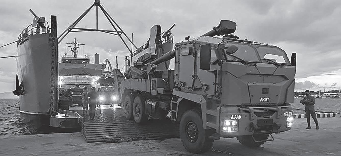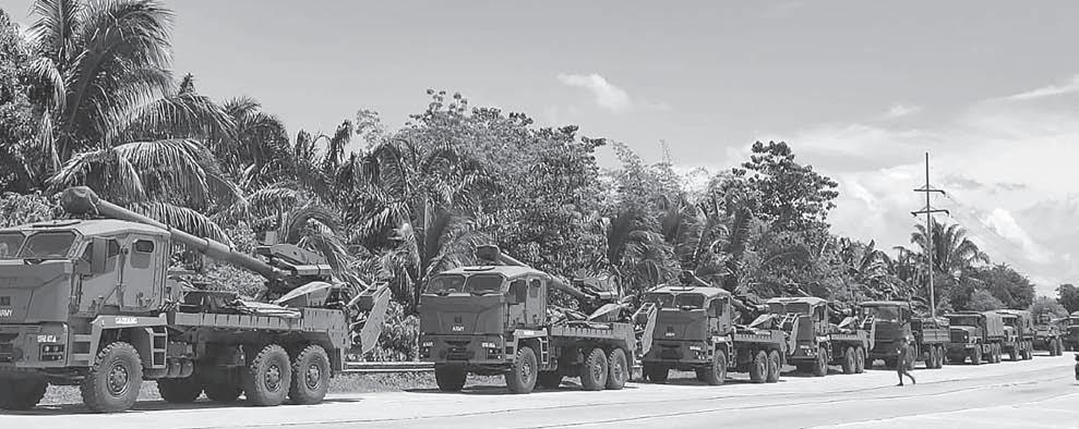 PHOTO COURTESY OF 6TH INFANTRY DIVISION, PHILIPPINE ARMY AUTONOMOUS Truck Mounted Howitzer System (ATMOS 2000) 155mm self-propelled guns and their support vehicles arrive at the Makar Port in General Santos City on September 29, 2022. PHOTO COURTESY OF 6TH INFANTRY DIVISION, PHILIPPINE ARMY
