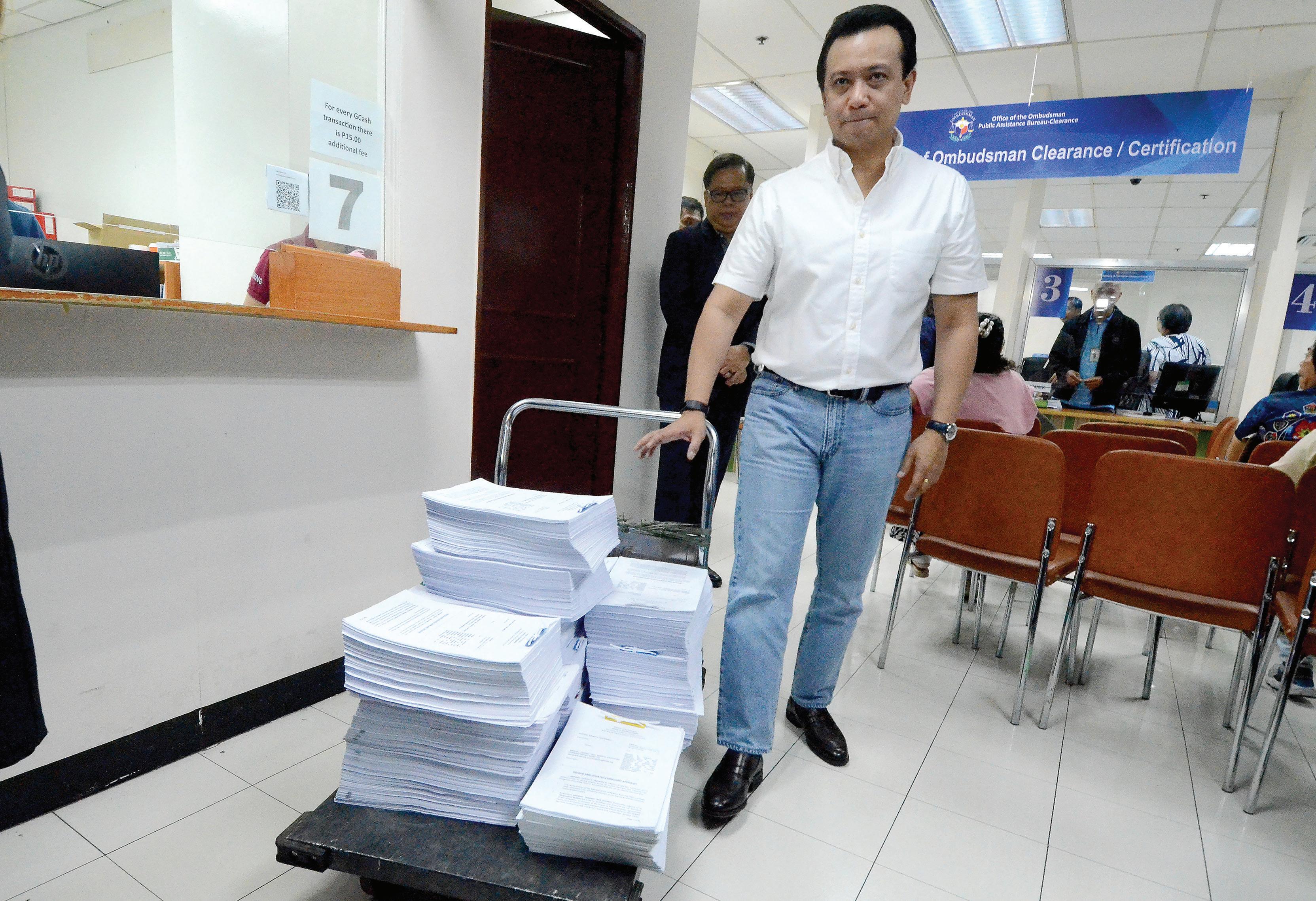 Trillanes IV on Tuesday asked the Ombudsman to investigate and prosecute former President Rodrigo Duterte, Sen. Lawrence Christopher Go and two others for plunder and graft in connection with the P7.8 billion infrastructure projects awarded to the construction firm owned by the senator’s family.