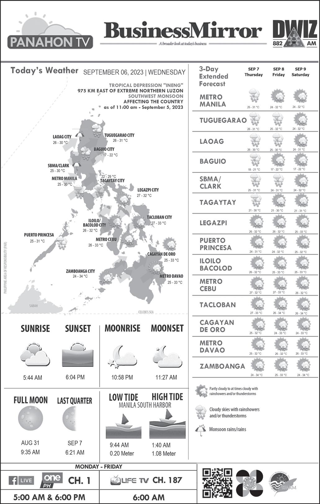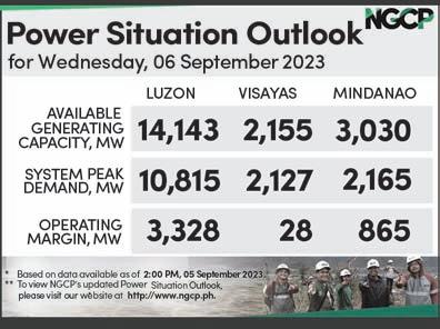 n Wednesday, September 6, 2023 Vol. 18 No. 324 PESO EXCHANGE RATES n US 56.5690 n JAPAN 0.3863 n UK 71.4523 n HK 7.2205 n CHINA 7.7753 n SINGAPORE 41.7453 n AUSTRALIA 36.5549 n EU 61.0719 n KOREA 0.0429 n SAUDI ARABIA 15.0811 Source : BSP(5 September2023)