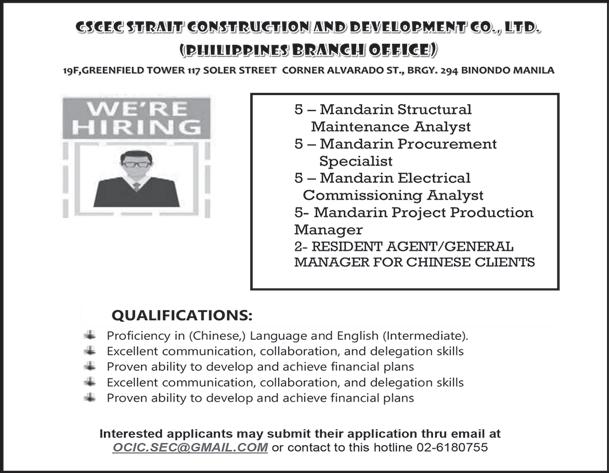 ESTABLISHMENT / ADDRESS No. NAME OF FOREIGN NATIONAL , POSITION AND BRIEF DESCRIPTION QUALIFICATION AND SALARY RANGE ESTABLISHMENT / ADDRESS No. NAME OF FOREIGN NATIONAL POSITION AND BRIEF DESCRIPTION QUALIFICATION AND SALARY RANGE ESTABLISHMENT / ADDRESS No. NAME OF FOREIGN NATIONAL , POSITION AND BRIEF DESCRIPTION QUALIFICATION AND SALARY RANGE BusinessMirror A6 www.businessmirror.com.ph A14 Saturday, September 23, 2023 43. FANG, LIN Mandarin Speaking Customer Service Representative Brief Job Description: Addressing customer concerns and issues thru phone call and email. Basic Qualification: Experience as Mandarin Speaking Customer Service Representative. Salary Range: Php 30,000 - Php 59,999 44. FENG, DAWEI Mandarin Speaking Customer Service Representative Brief Job Description: Addressing customer concerns and issues thru phone call and email. Basic Qualification: Experience as Mandarin Speaking Customer Service Representative. Salary Range: Php 30,000 - Php 59,999 45. GUO, HAIBING Mandarin Speaking Customer Service Representative Brief Job Description: Addressing customer concerns and issues thru phone call and email. Basic Qualification: Experience as Mandarin Speaking Customer Service Representative. Salary Range: Php 30,000 - Php 59,999 46. HOU, WEI Mandarin Speaking Customer Service Representative Brief Job Description: Addressing customer concerns and issues thru phone call and email. Basic Qualification: Experience as Mandarin Speaking Customer Service Representative. Salary Range: Php 30,000 - Php 59,999 47. LAN, YUANZHONG Mandarin Speaking Customer Service Representative Brief Job Description: Addressing customer concerns and issues thru phone call and email. Basic Qualification: Experience as Mandarin Speaking Customer Service Representative. Salary Range: Php 30,000 - Php 59,999 48. LI, XING Mandarin Speaking Customer Service Representative Brief Job Description: Addressing customer concerns and issues thru phone call and email. Basic Qualification: Experience as Mandarin Speaking Customer Service Representative. Salary Range: Php 30,000 - Php 59,999 49. LIN, JUNJIE Mandarin Speaking Customer Service Representative Brief Job Description: Addressing customer concerns and issues thru phone call and email. Basic Qualification: Experience as Mandarin Speaking Customer Service Representative. Salary Range: Php 30,000 - Php 59,999 50. LIU, ANYING Mandarin Speaking Customer Service Representative Brief Job Description: Addressing customer concerns and issues thru phone call and email. Basic Qualification: Experience as Mandarin Speaking Customer Service Representative. Salary Range: Php 30,000 - Php 59,999 51. PAN, KUN Mandarin Speaking Customer Service Representative Brief Job Description: Addressing customer concerns and issues thru phone call and email. Basic Qualification: Experience as Mandarin Speaking Customer Service Representative. Salary Range: Php 30,000 - Php 59,999 52. QIN, CHONGYUE Mandarin Speaking Customer Service Representative Brief Job Description: Addressing customer concerns and issues through phone calls and email. Basic Qualification: Mandarin speaking customer service representative. Salary Range: Php 30,000 - Php 59,999 53. QU, XIANQIN Mandarin Speaking Customer Service Representative Brief Job Description: Addressing customer concerns and issues through phone calls and email. Basic Qualification: Mandarin speaking customer service representative. Salary Range: Php 30,000 - Php 59,999 54. SONG, JINGYU Mandarin Speaking Customer Service Representative Brief Job Description: Addressing customer concerns and issues thru phone call and email. Basic Qualification: Experience as Mandarin Speaking Customer Service Representative. Salary Range: Php 30,000 - Php 59,999 55. SONG, XIAOFANG Mandarin Speaking Customer Service Representative Brief Job Description: Addressing customer concerns and issues through phone calls and email. Basic Qualification: Mandarin speaking customer service representative. Salary Range: Php 30,000 - Php 59,999 56. SUN, LIANGDONG Mandarin Speaking Customer Service Representative Brief Job Description: Addressing customer concerns and issues through phone calls and email. Basic Qualification: Mandarin speaking customer service representative. Salary Range: Php 30,000 - Php 59,999 57. SUN, XIAOFENG Mandarin Speaking Customer Service Representative Brief Job Description: Addressing customer concerns and issues through phone calls and email. Basic Qualification: Mandarin speaking customer service representative. Salary Range: Php 30,000 - Php 59,999 58. TANG, PINGTAO Mandarin Speaking Customer Service Representative Brief Job Description: Addressing customer concerns and issues through phone calls and email. Basic Qualification: Mandarin speaking customer service representative. Salary Range: Php 30,000 - Php 59,999 59. TU, YONGKUI Mandarin Speaking Customer Service Representative Brief Job Description: Addressing customer concerns and issues through phone calls and email. Basic Qualification: Mandarin speaking customer service representative. Salary Range: Php 30,000 - Php 59,999 60. WANG, JIEZAI Mandarin Speaking Customer Service Representative Brief Job Description: Addressing customer concerns and issues through phone calls and email. Basic Qualification: Mandarin speaking customer service representative. Salary Range: Php 30,000 - Php 59,999 61. WANG, JUNJIE Mandarin Speaking Customer Service Representative Brief Job Description: Addressing customer concerns and issues through phone calls and email. Basic Qualification: Mandarin speaking customer service representative. Salary Range: Php 30,000 - Php 59,999 62. WANG, SHIJUN Mandarin Speaking Customer Service Representative Brief Job Description: Addressing customer concerns and issues through phone calls and email. Basic Qualification: Mandarin speaking customer service representative. Salary Range: Php 30,000 - Php 59,999 63. WEI, BIFENG Mandarin Speaking Customer Service Representative