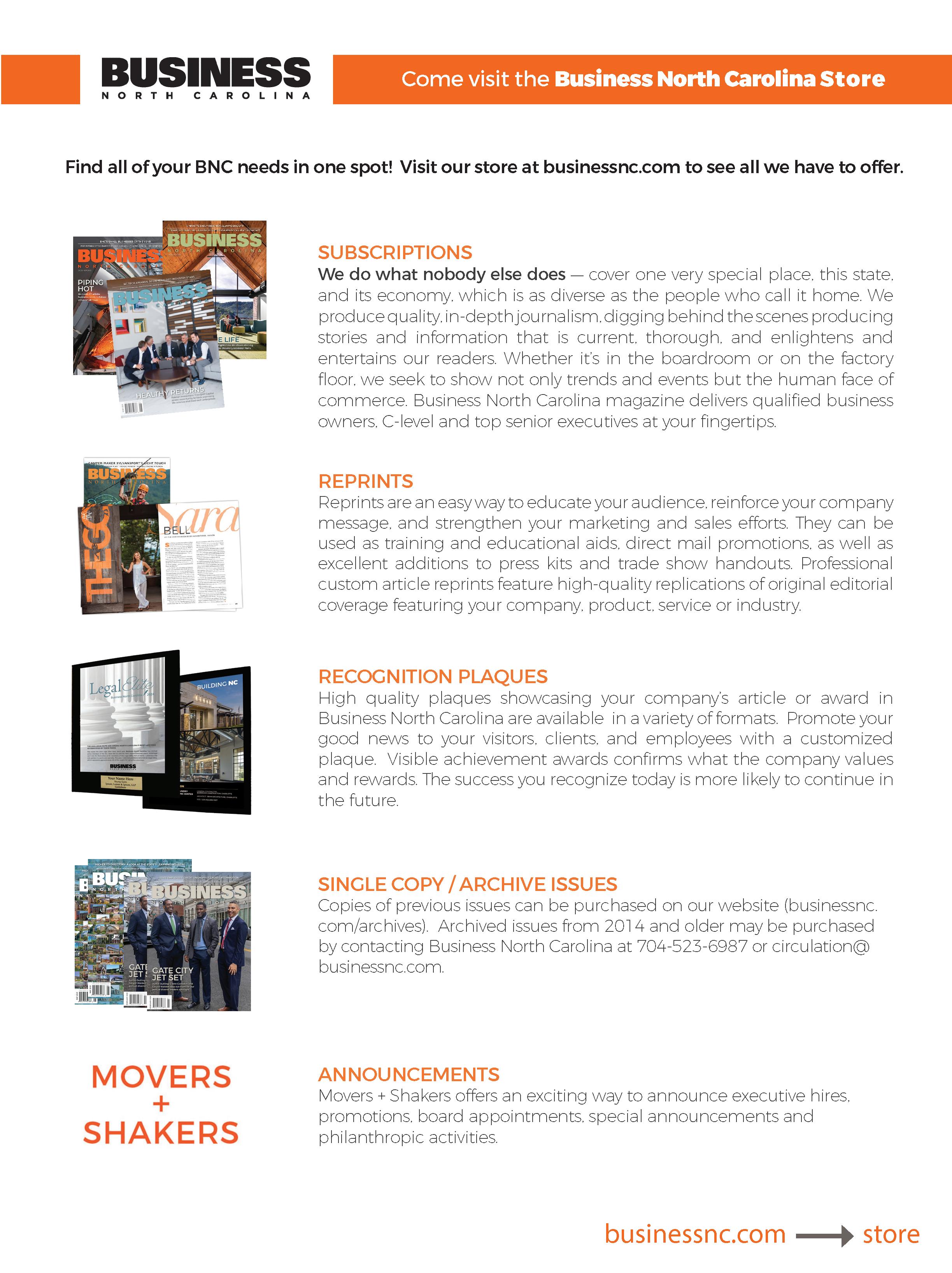 Please contact publisher bkinney@businessnc.com with revisions or additions, so we can update our records.