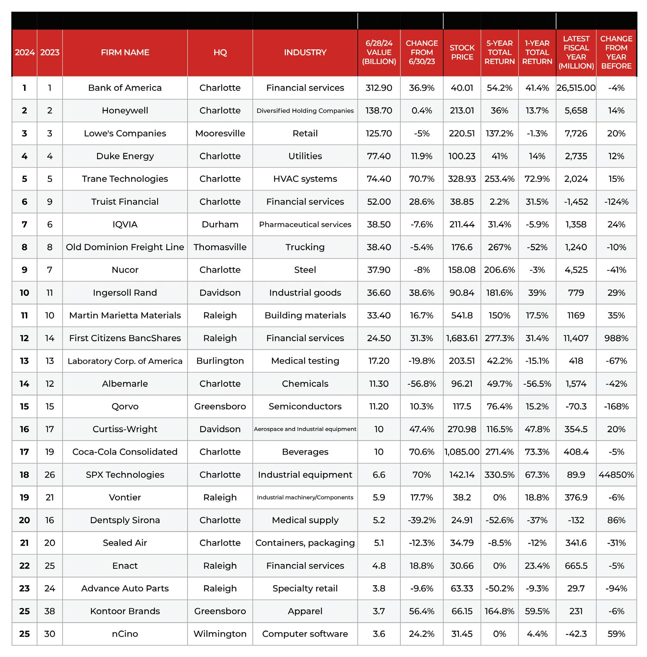 Many big N.C.-based stocks soared over the past year. Still, 33 of the 75 showed declines.