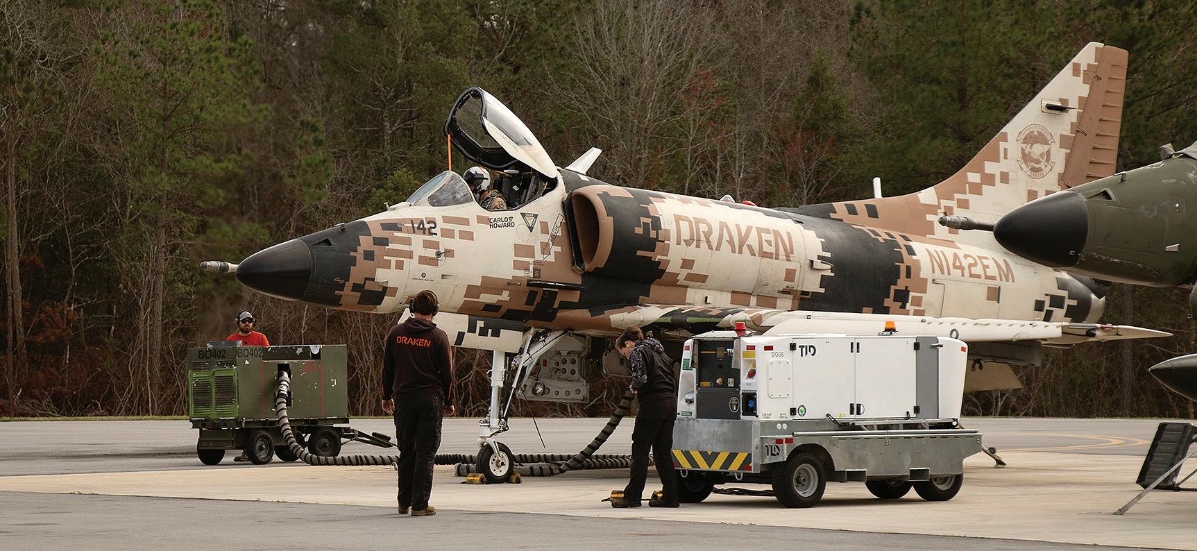 The Kinston airport, originally built by the Navy in 1944, has an 11,500foot runway, capable of handling military needs, and a 26,000-squarefoot terminal. The Department of Defense has a 25-year agreement to use the airport for training. Other key employers are Draken International, which uses its fighter jets for combat training with active-duty military pilots; flyExclusive, a private jet charter company; and SpiritAerosystems next door, with its Composite Center of Excellence training center operated through Lenoir Community College.