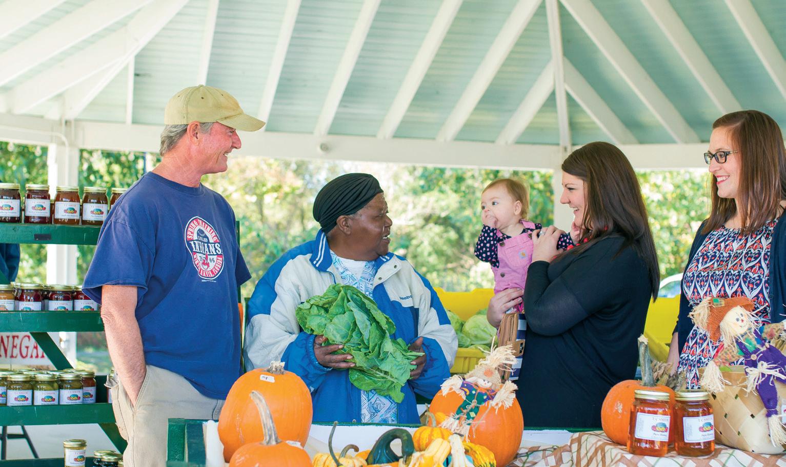 ▲Locals peruse the Lenoir County Farmers Market on Tuesdays and Thursdays on downtown Kinston’s Heritage Street.