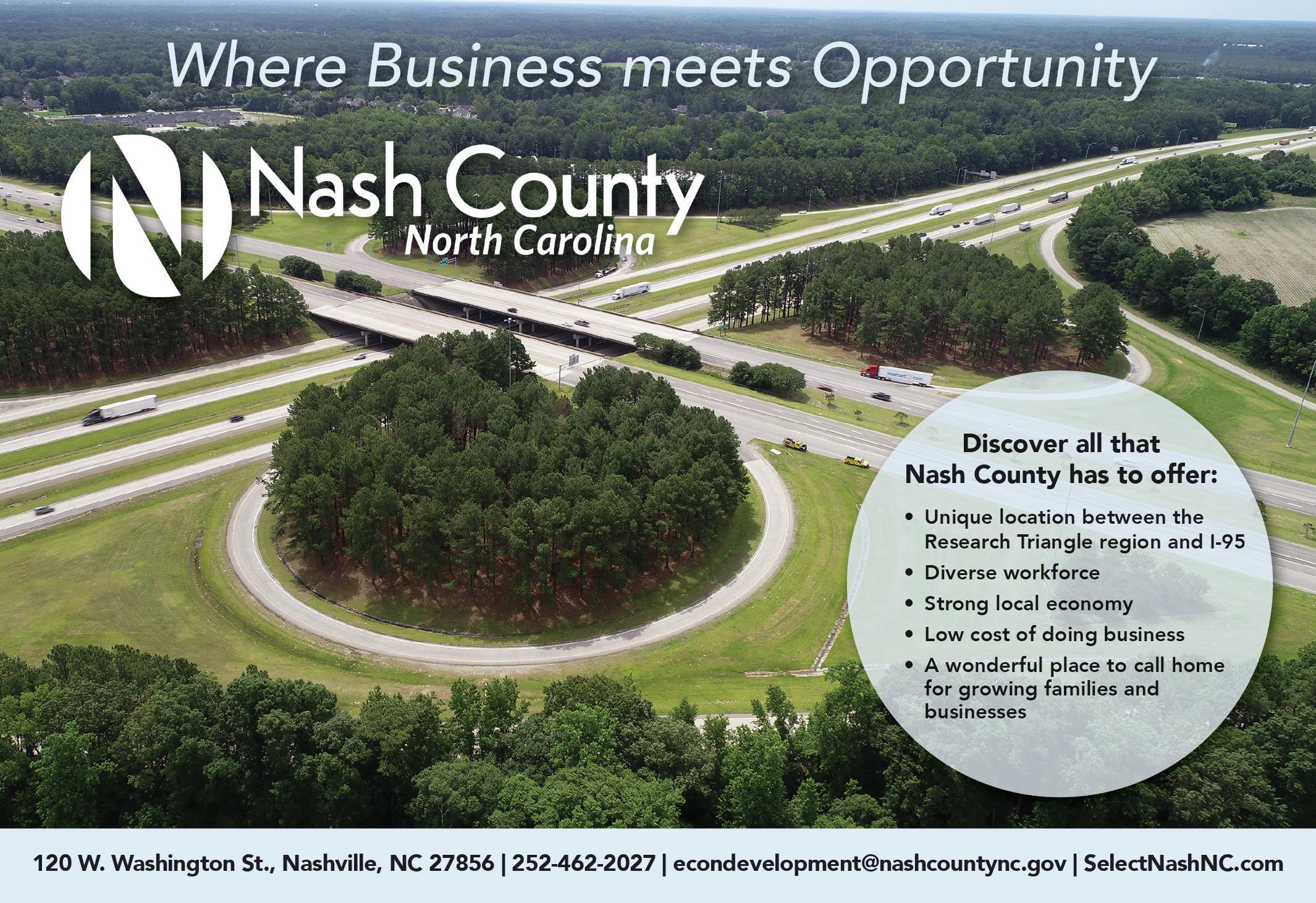 Nash County, North Carolina is a thriving community located between the Research Triangle region and Interstate 95. Nash County offers a diverse workforce, affordable living and doing business, and a great place for your next business location. Corporate giants like Pfizer, Cummins Engines and Honeywell Aerospace are
