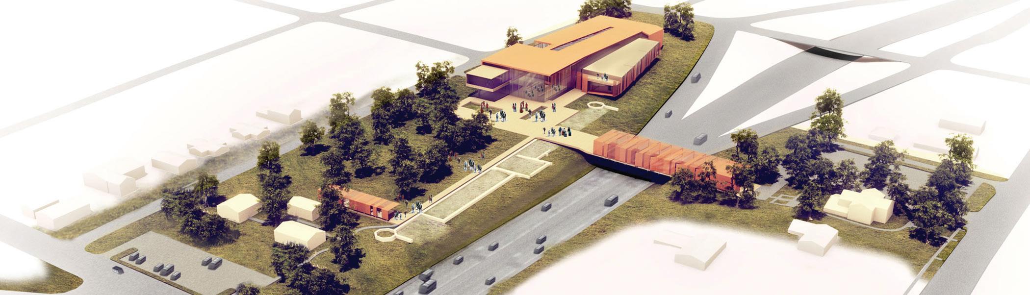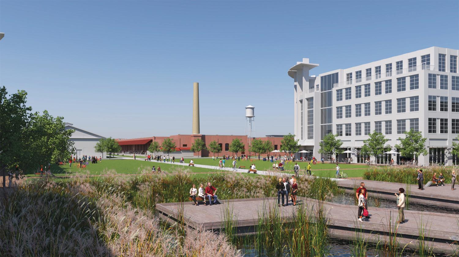 ▲ Sculptor Thomas Sayre created art installation “Flue” using earth-casting — a process of casting reinforced concrete — at the former Brooks Tobacco Warehouse site.