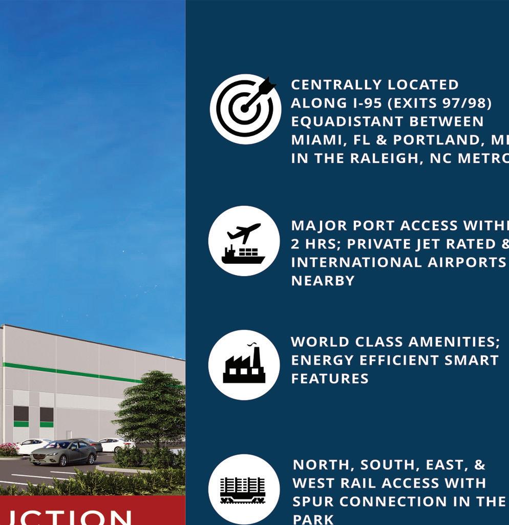PARK @ 74 120-acre master planned industrial park adjacent to Forsyth County’s largest industrial park, Union Cross Business Park. 860,000 SF currently under construction with two lots remaining at up to 300,000 SF.
