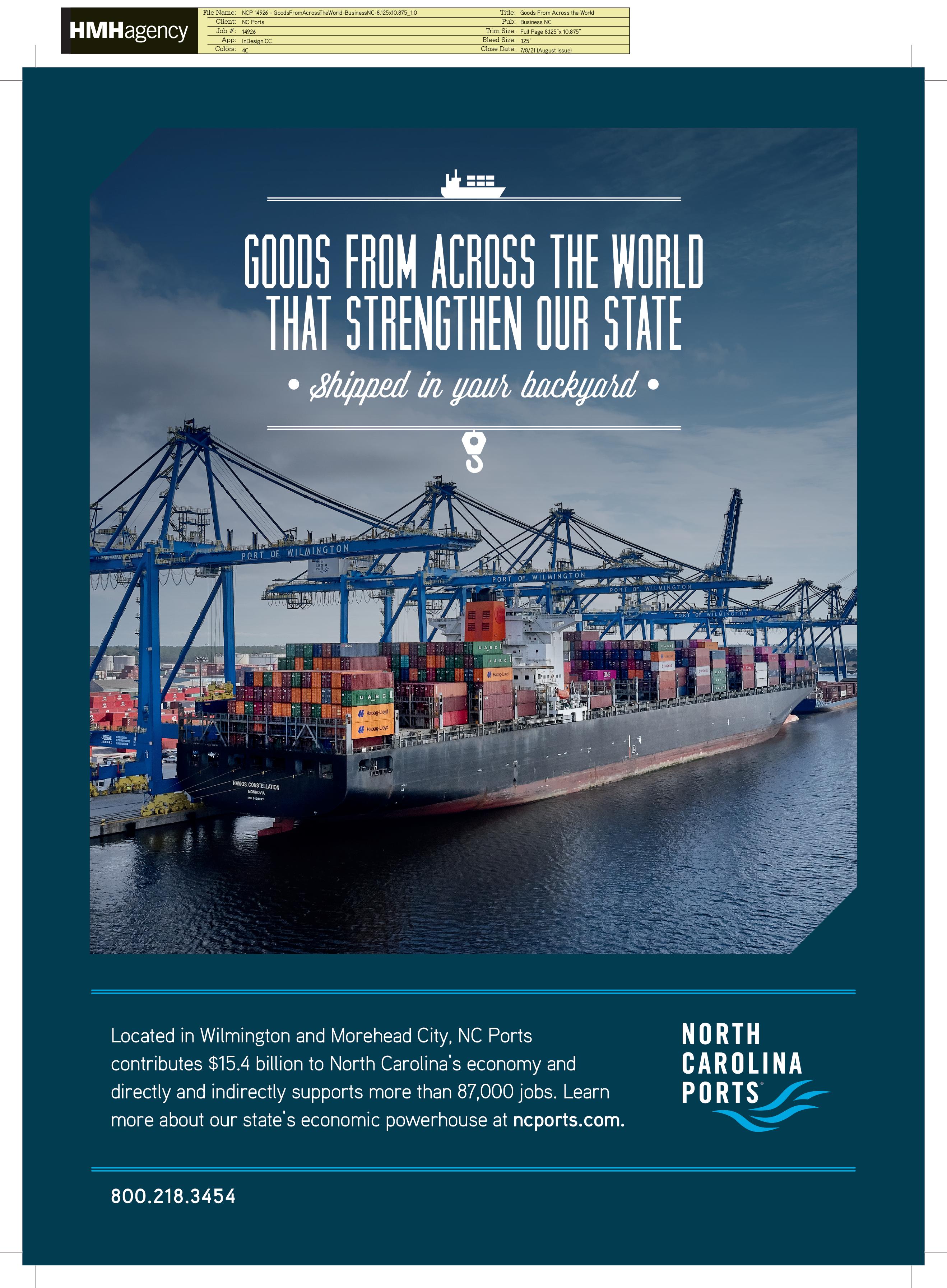 A strong economy is built on connections. Not just connections to global markets, but also between industries, businesses and people. At North Carolina Ports, we build all types of connections every day. We’re proud of the effect they’ve had on our state’s economic health, and we’re excited about where they can take us next.