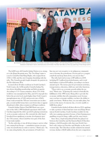 This opportunity is long overdue, he adds. “From the beginning of European contact, the Catawba has always been a good neighbor. And we have proven over and over through history that we are that good neighbor. No matter how many times we were wronged, we kept coming back with an open hand, not a closed fist.” ■