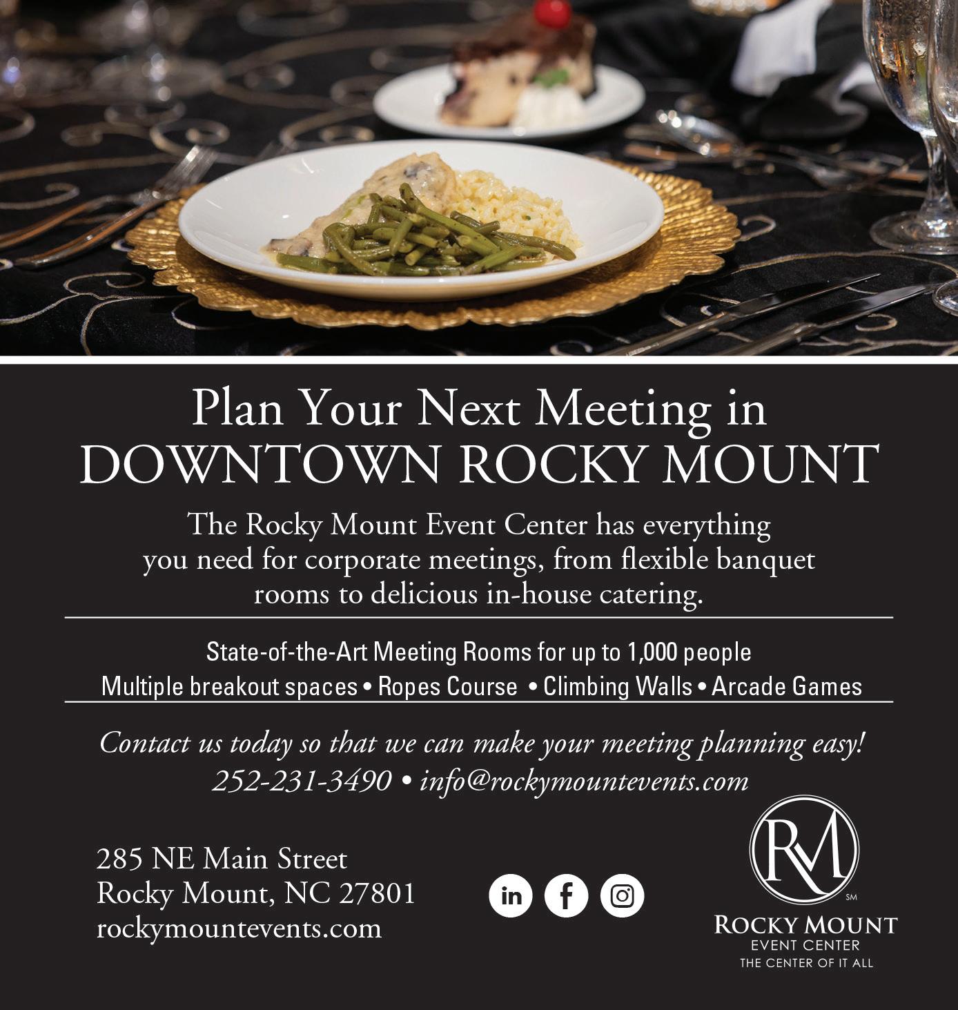 Farris points to several things that make this corner of North Carolina special. “We laugh and think maybe it’s in the water coming from the Tar River or in the barbecue,” he says. “But we are a community that’s developed leadership and entrepreneurship. Rocky Mount is a wonderful community where people care about one another. I can be in Raleigh in 45 minutes. But I like being able to walk in somewhere where everyone knows your name.” ■