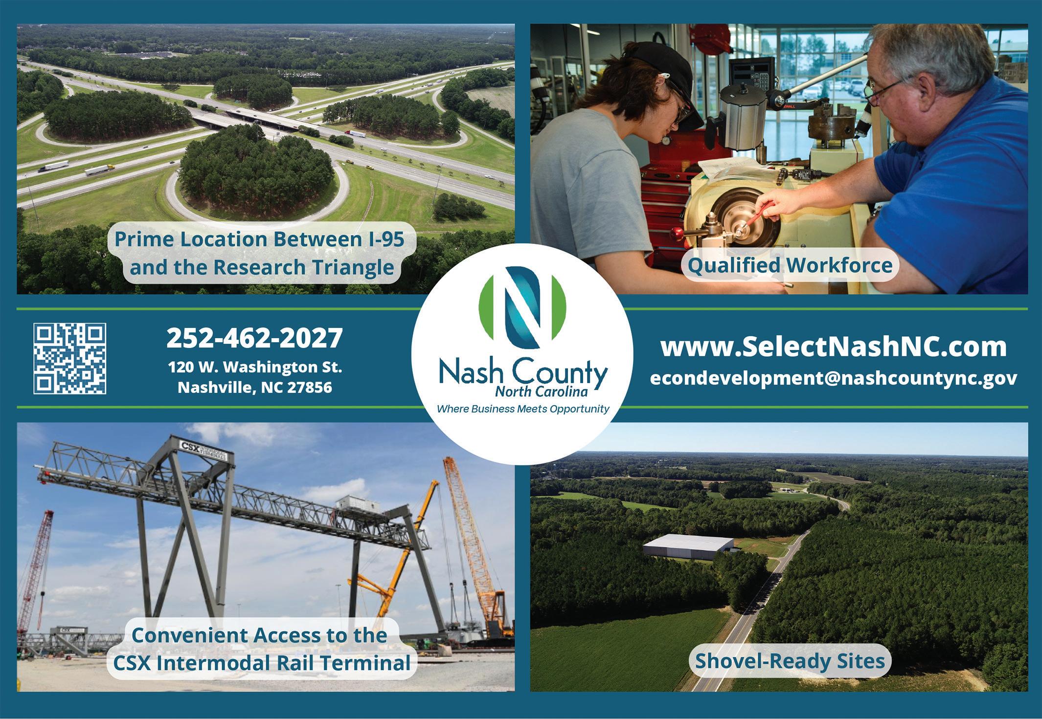 Phelps says it’s all about the big picture. “We aren’t just providing location,” she says. “We have the whole package. The hospital system, which is UNC [Health Care], is a good selling point. We have quality schools and high school [career and technical education] training, and [Nash Community College] offers Career and College Promise, so they’re getting an associate degree, and they’re guaranteed a partnership in what they choose.”