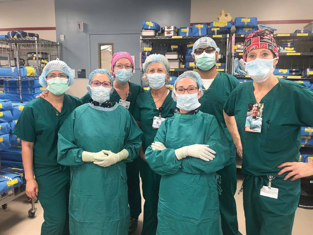 Lower left (above): Jorge Islas, athletic trainer; Kyle Kirkland, physician assistant | Lower left (below): Penny Strickland Allen, RTP; Stephanie Bonham Ratliff, PA-C, MS, MPT | Lower center photo: Irene Quemada, RN-BSN, LNC, CNOR; Claudia Gomez, RN-BSN, MSN, CNOR, MI; Rachel Dell, RN; Carolyn Homewood, RN; Margaret “Beth” Cummings, RN, CNOR; Kelvin Romero, CST; Lee Wilson, RN, CNOR (honoring Ed Lavoie who recently passed)