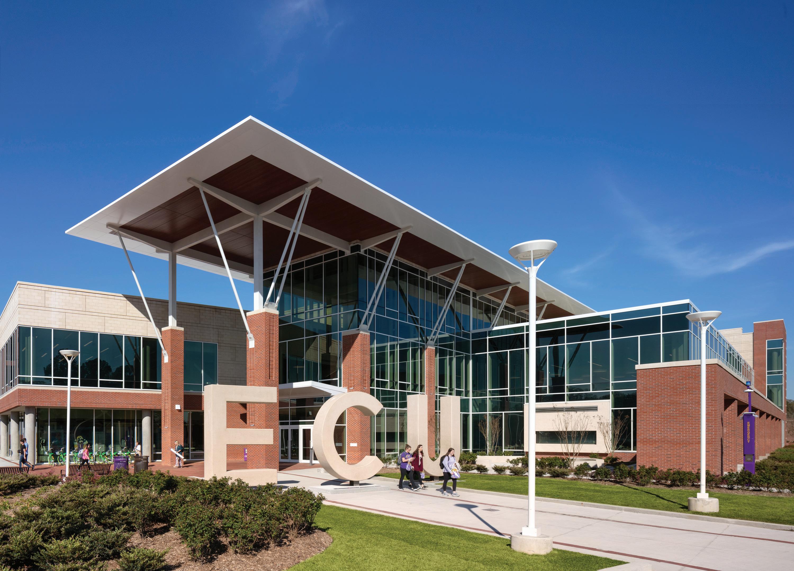 building that could address real-world problems in our region, involving our students and creating innovative solutions to those issues,” says Ron Mitchelson, ECU’s interim chancellor. The building, funded through the $2 billion Connect NC bond, which voters statewide approved in 2016, is expected to open in August.