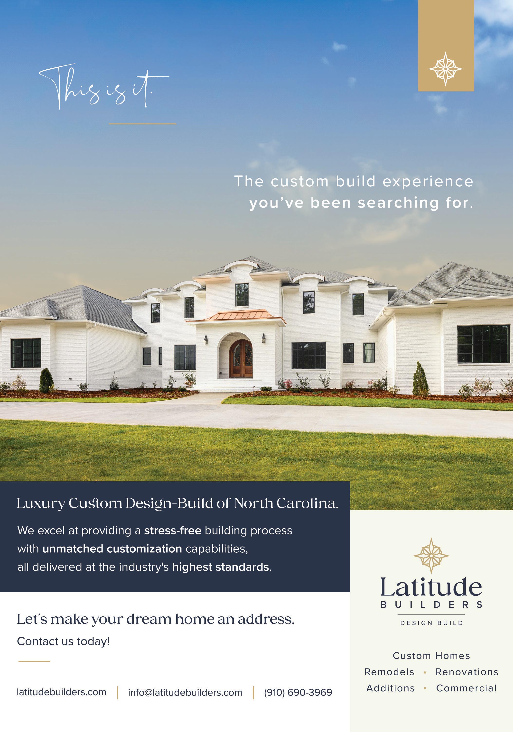 Tyler Cook is CEO and founder of Latitude Builders. He graduated from East Carolina University in 2013 and worked in commercial and residential construction. In 2019, he and his wife Emily founded Latitude, which became Southern Pines’ turnkey custom builder that won Moore County Home of the Year and Best of the Pines.