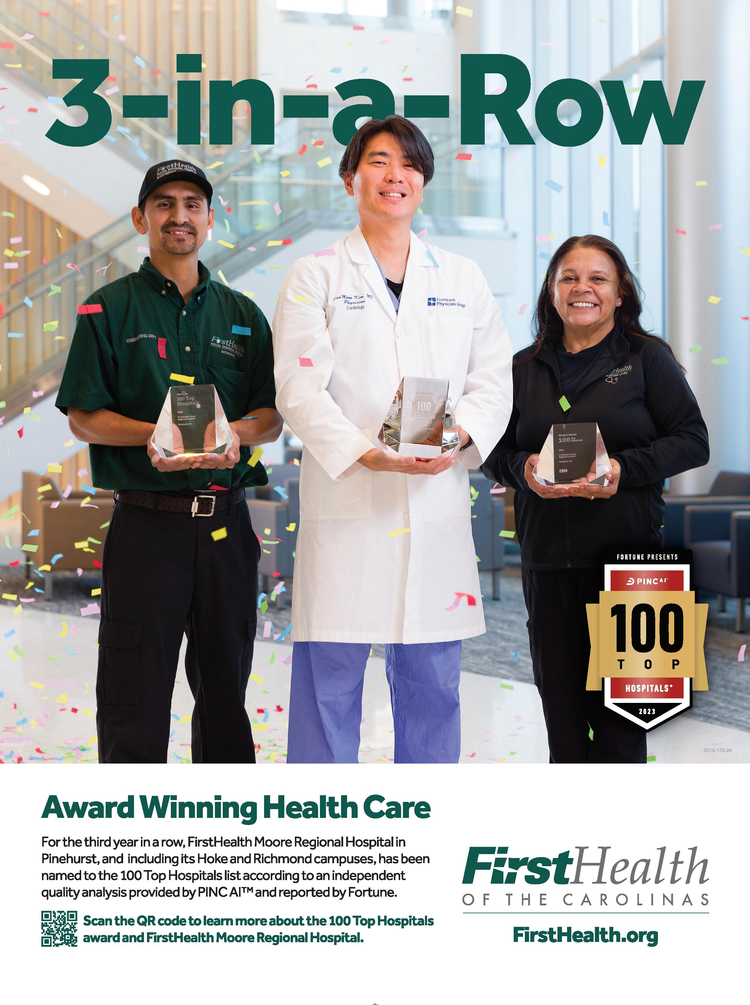 “My organization just hosted an entrepreneurial summit, and we had 200 people there and 40 said they wanted to start their own business, and one has,” Hawkins says. “Moore County has a variety of smallbusiness environments, and that’s what makes our economy resilient during economic downturns. There are no big factories that are going to lay off hundreds of people at a time. We are in the top 7% nationally in resilient economies for communities of less than 50,000, and our future is bright for all the population that’s coming our way.”