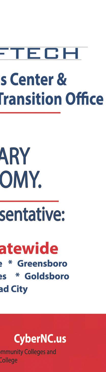 e topic was what the state can do to help veterans and get them to stay here. is year, an estimated 21,300 service members will leave our bases – Fort Liberty, Camp Lejeune, Seymour Johnson Air Force Base and the Coast Guard – and become civilians. At a time when employers struggle to nd workers and colleges struggle with enrollments, this is a prime group to recruit. We already are home to nearly 700,000 veterans and their families, the ninth-largest veteran population in the U.S., and nearly 200,000 are under 50.