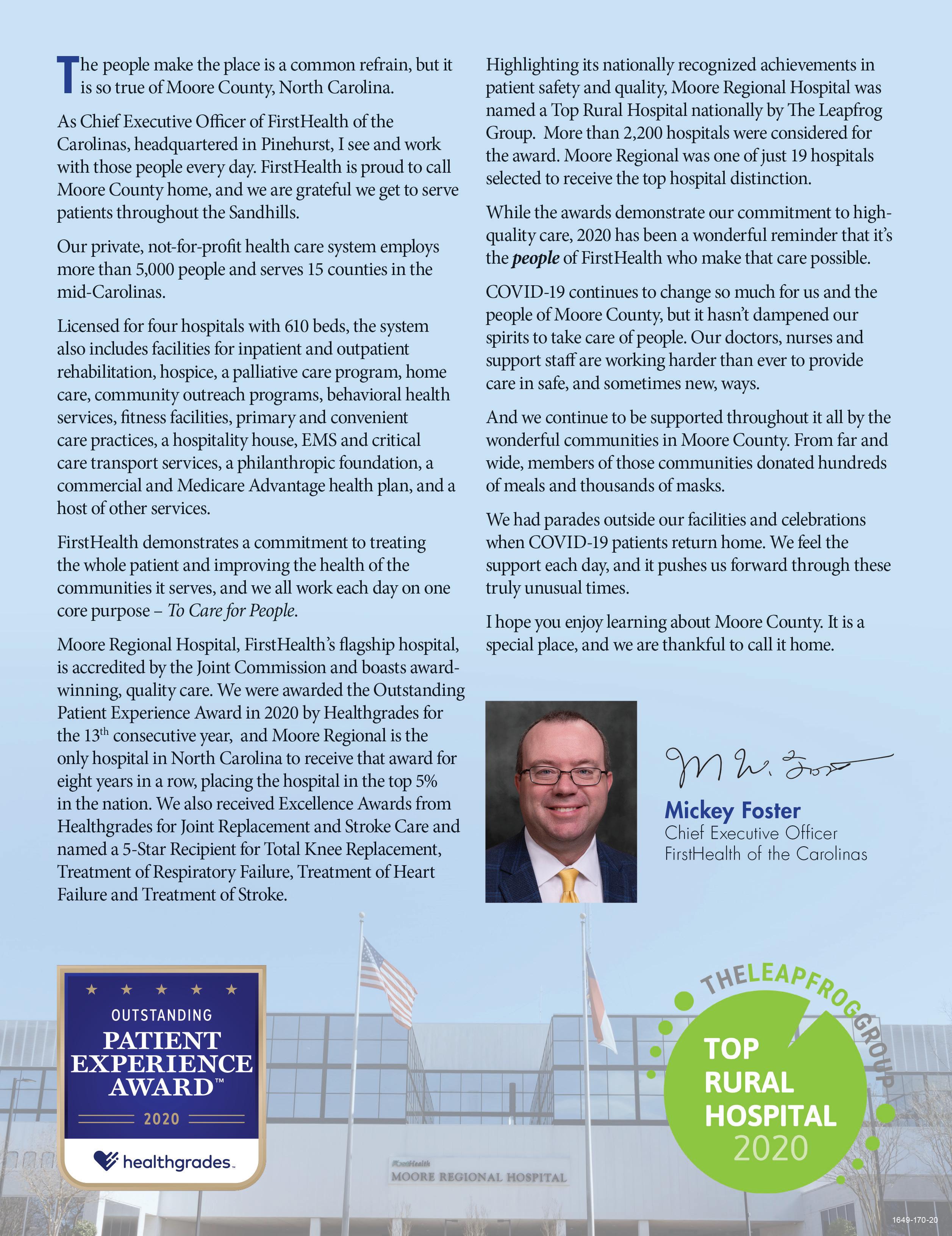 FirstHealth’s network serves 15 counties, has nearly 5,000 employees and operates specialty locations in Pinehurst and Southern Pines. It’s participating in the Mayo Clinic’s convalescent plasma expanded access program, which is providing plasma-transfusion treatment for patients with COVID-19 symptoms that are severe or life-threatening.