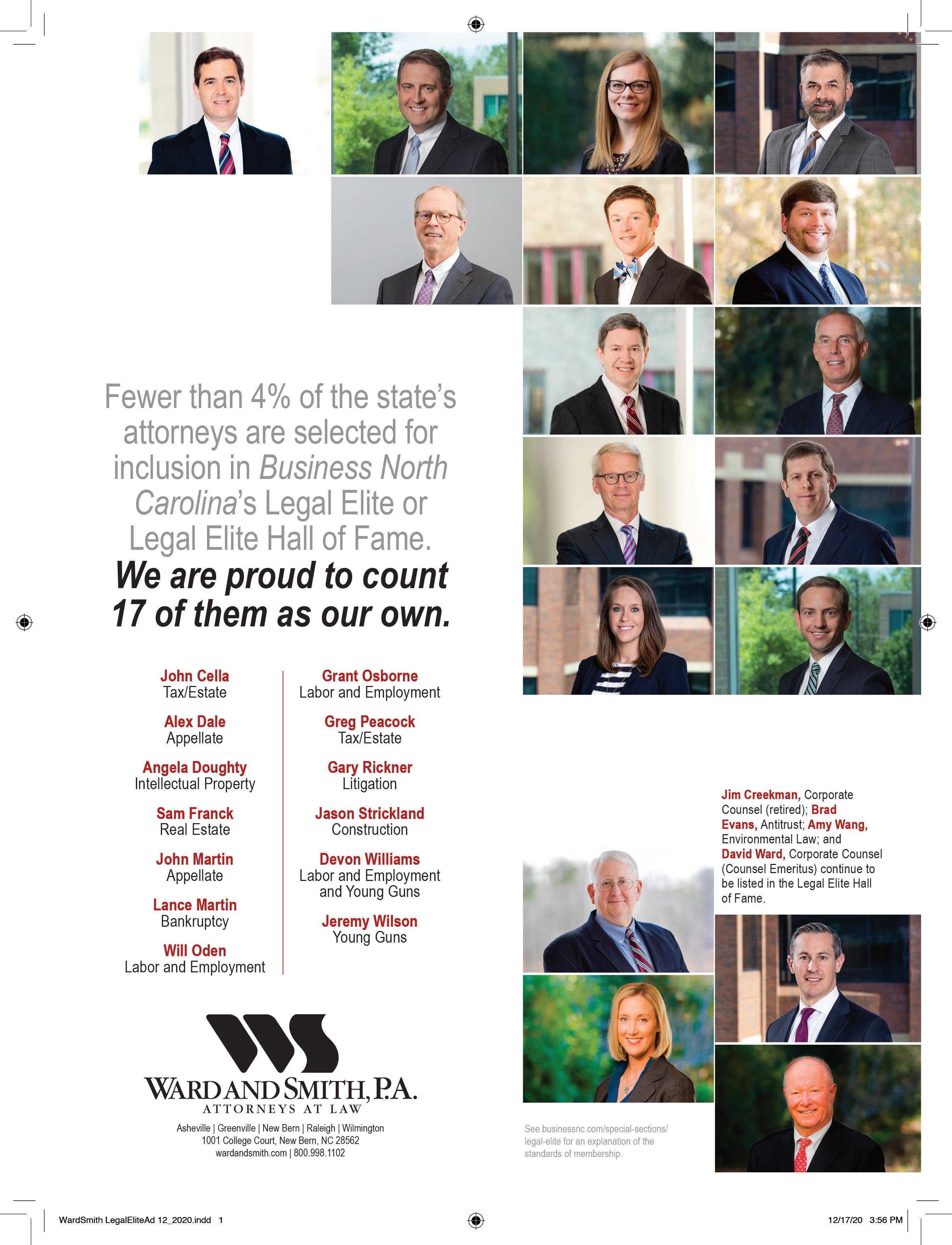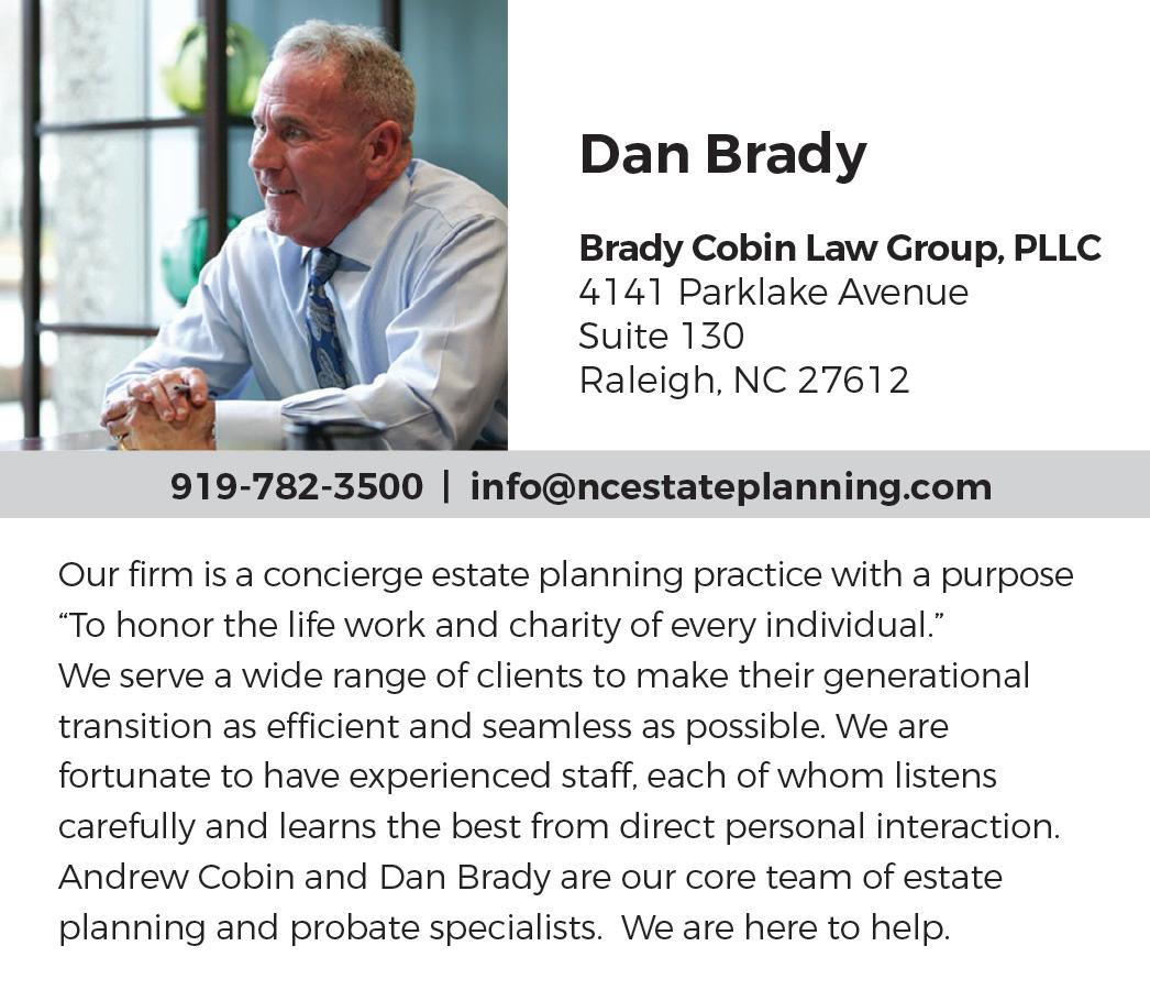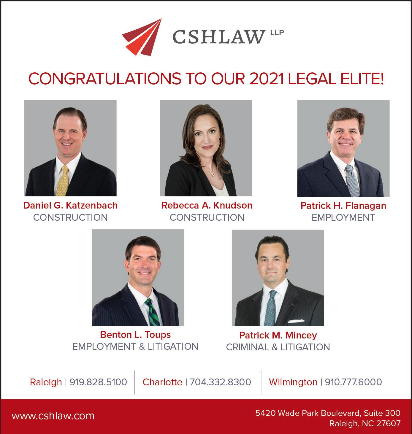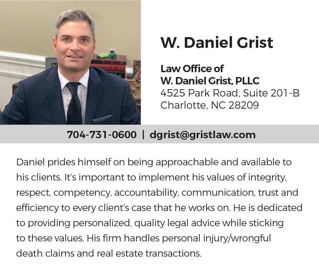 But not everything has been bleak. The pandemic has put some things in perspective for me more than ever. I’ve learned to embrace technology in a whole new capacity — I’m a self-proclaimed Zoom expert, though I still can’t figure out how to add wacky new backgrounds. Much like this year’s Legal Elite winners, whom we asked to describe a hobby they picked up during quarantine, I’ve experienced a burst of creative energy and a desire to try new pursuits, such as home-improvement projects like Ben Martin (Page 40), playing games with my family like John Cross Jr. (Page 52), or cooking like Charlotte lawyer and foodie Rick McDermott (Page 54).