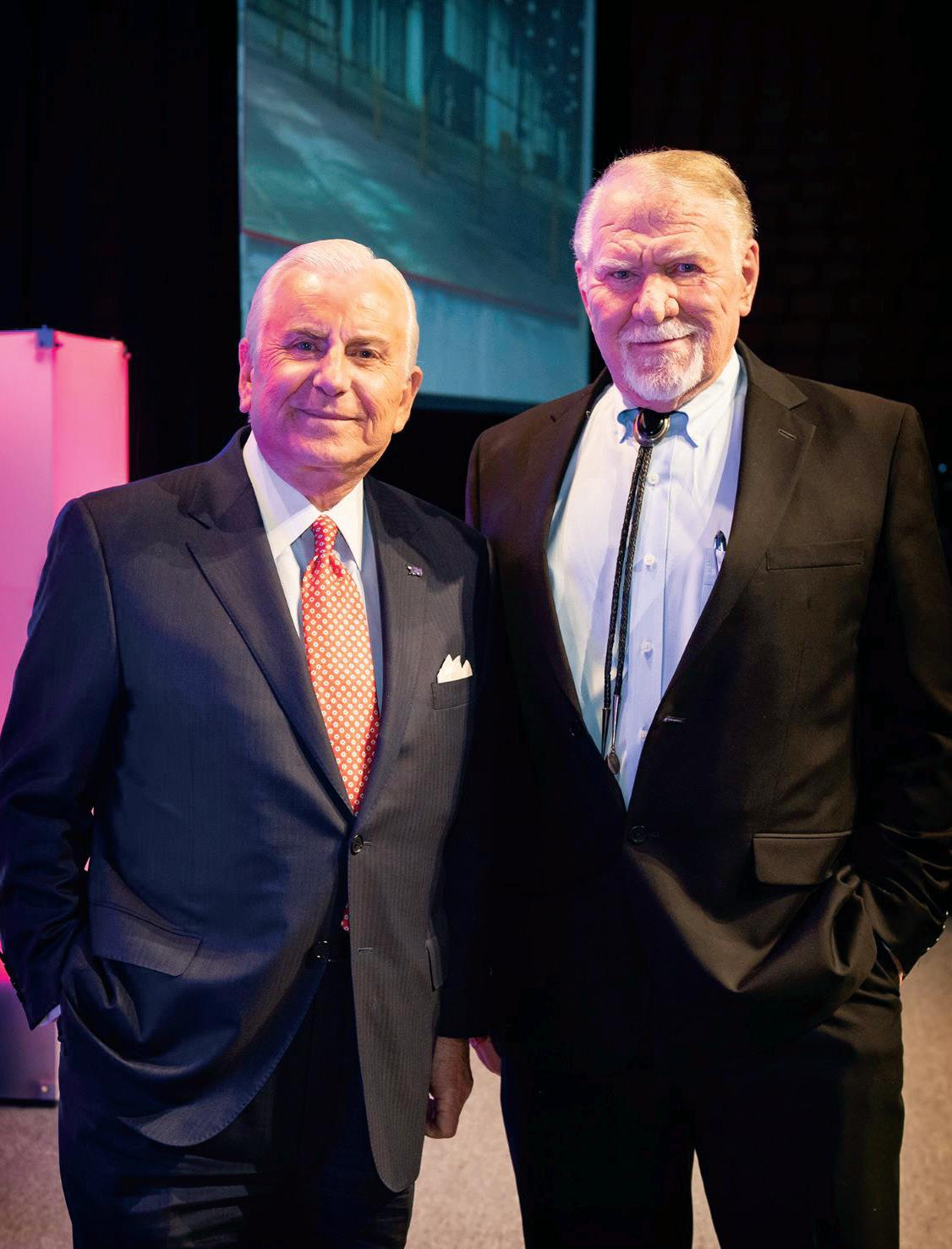 ▲ Steve Stroud rubs elbows with other N.C. movers and shakers such as Nido Qubein, president of High Point University, top. One of Stroud’s biggest contributions to the state was helping attract the Hartford Whalers NHL team — later renamed the Carolina Hurricanes — to Raleigh in 1997.