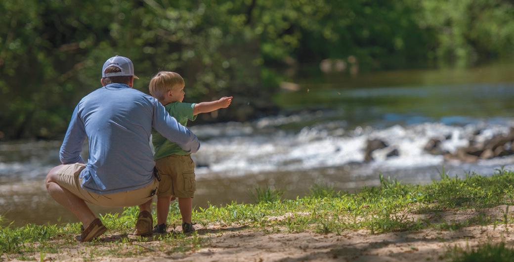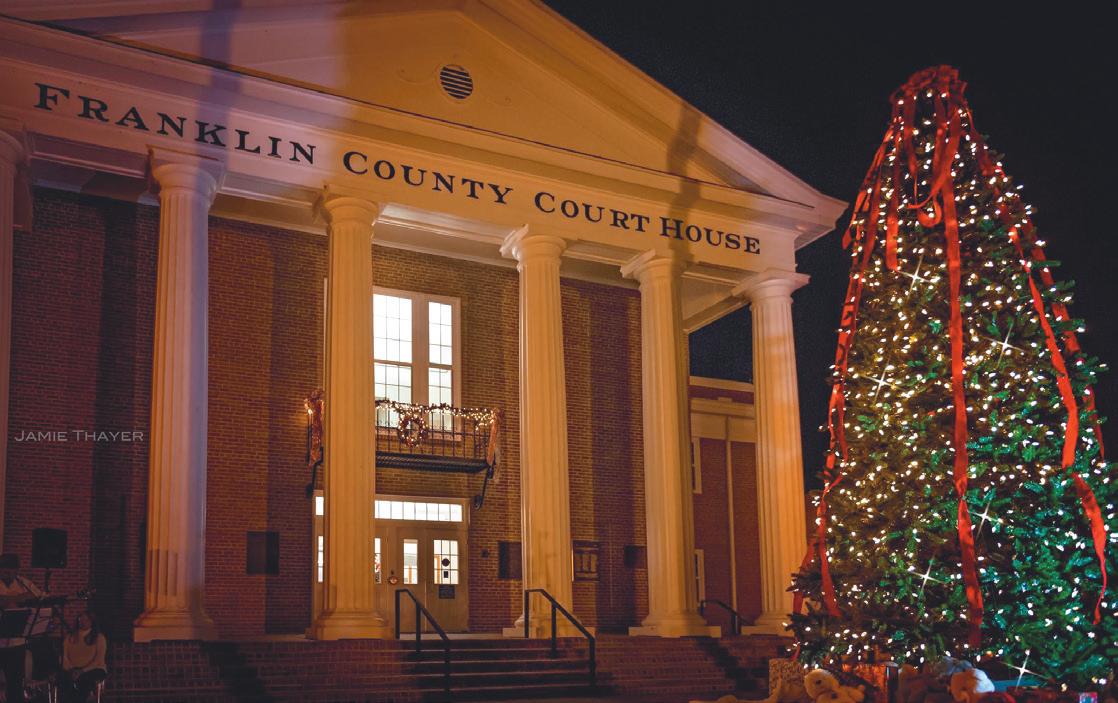 ▲ Louisburg College, top right, is the state’s only residential two-year college. The Franklin County Courthouse is a fixture of Louisburg’s city center, while Riverbend Park offers views of the Tar River.