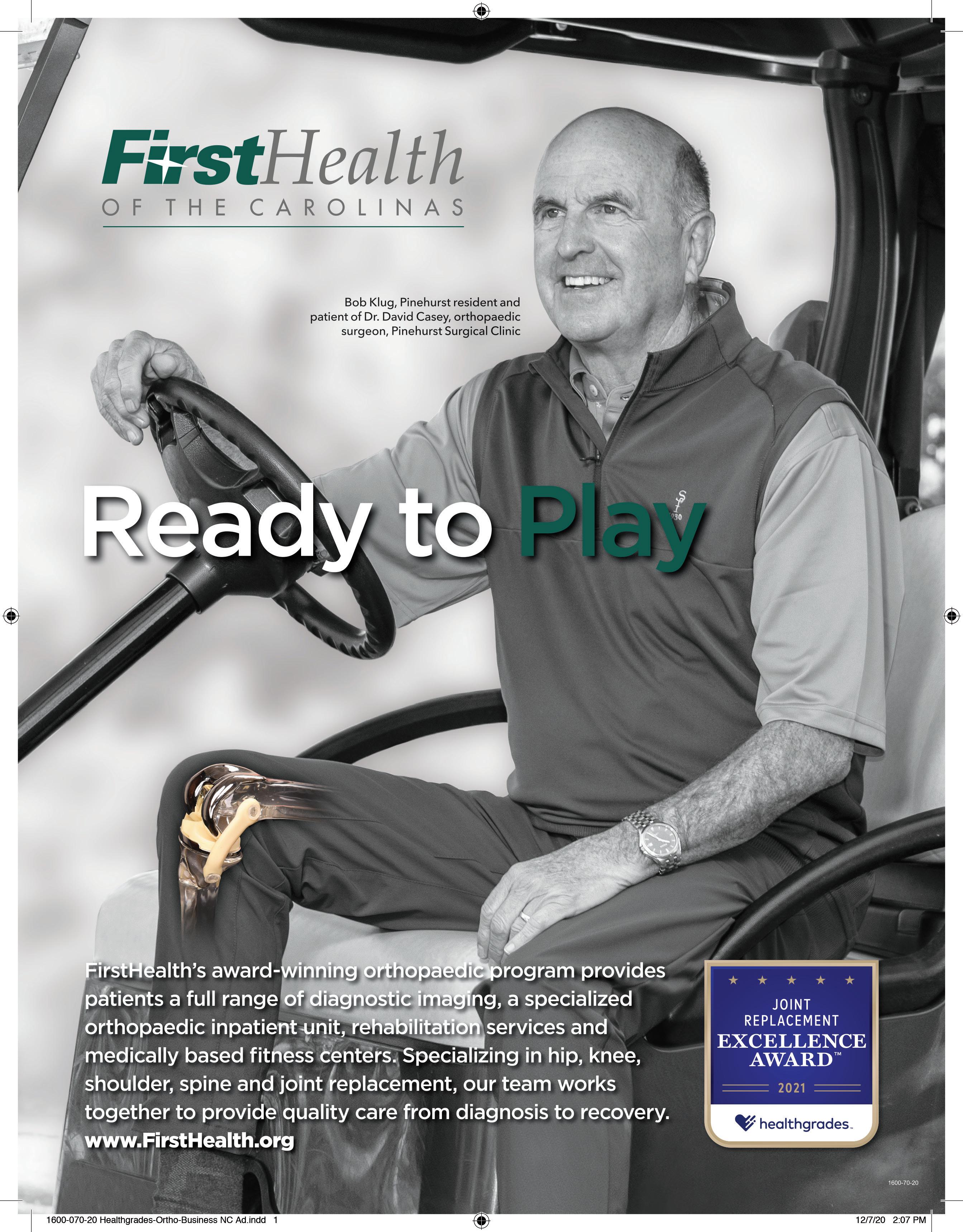 “Moore County has a very high-volume joint-replacement program that’s been around a number of years,” he says. “And I think this is just the next step in providing a more specialized program for our region. We do have some Titleist trainers in our area who our golfers see for physical therapy, and I could see our [physical-therapy] department having a ‘Return to Golf’ program. We don’t have that now, but [it] could work for all the orthopedic procedures we do.”