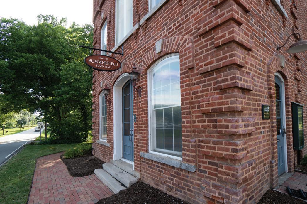The traditional center of town, at the intersection of N.C. 150 and Old Summerfield Road, is mostly free of commercial enterprise. Summerfield Town Hall, with its quaint, oval sign overhanging the sidewalk, occupies a handsome brick building dating back to 1872. But last November, the city council approved the construction of a $3.5 million town hall at a nearby location.