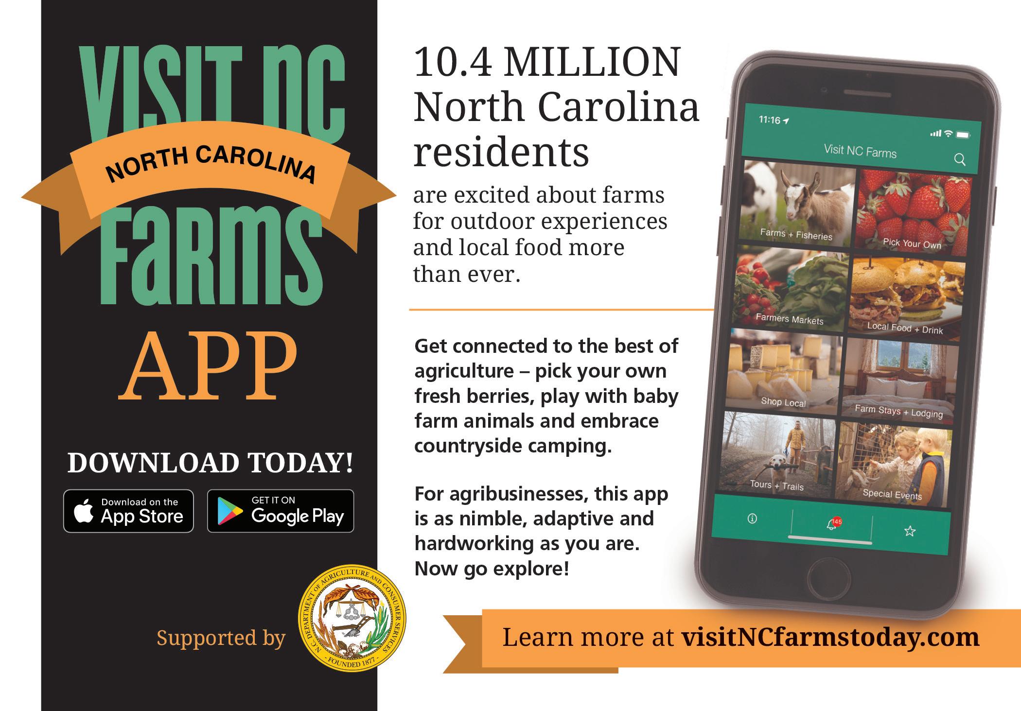 Visit N.C. Farms also needs support from local organizations such as agriculture extension bureaus, chambers of commerce and economic development agencies. The groups provide local administrators who promote and manage the app and help users get on board. There are more than 120 local administrators in communities statewide. They meet monthly to continuously improve the app. “Visit N.C. Farms has grown into a robust agribusiness and agritourism resource to connect people to farms they might not have otherwise known even existed,” Baggett says.