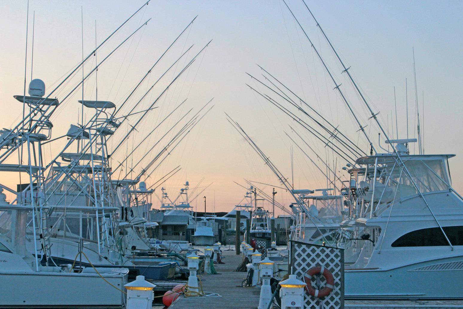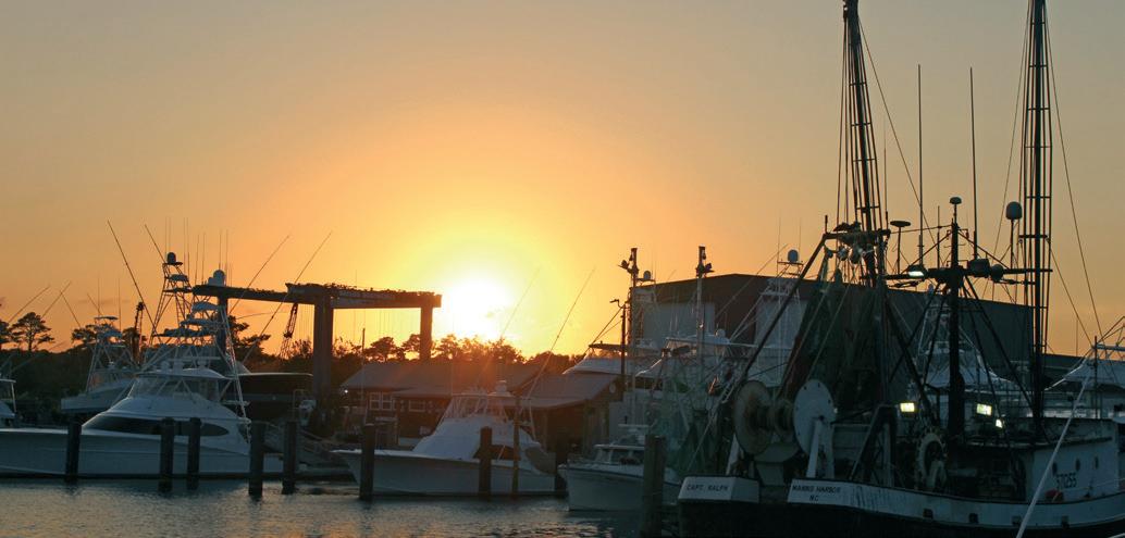 W▲ Roanoke Marshes Light, top, guides boats into the bay on Roanoke Island. The Outer Banks Marina, bottom, in the heart of Wanchese, is 6 miles from the Oregon Inlet, a popular fishing destination.