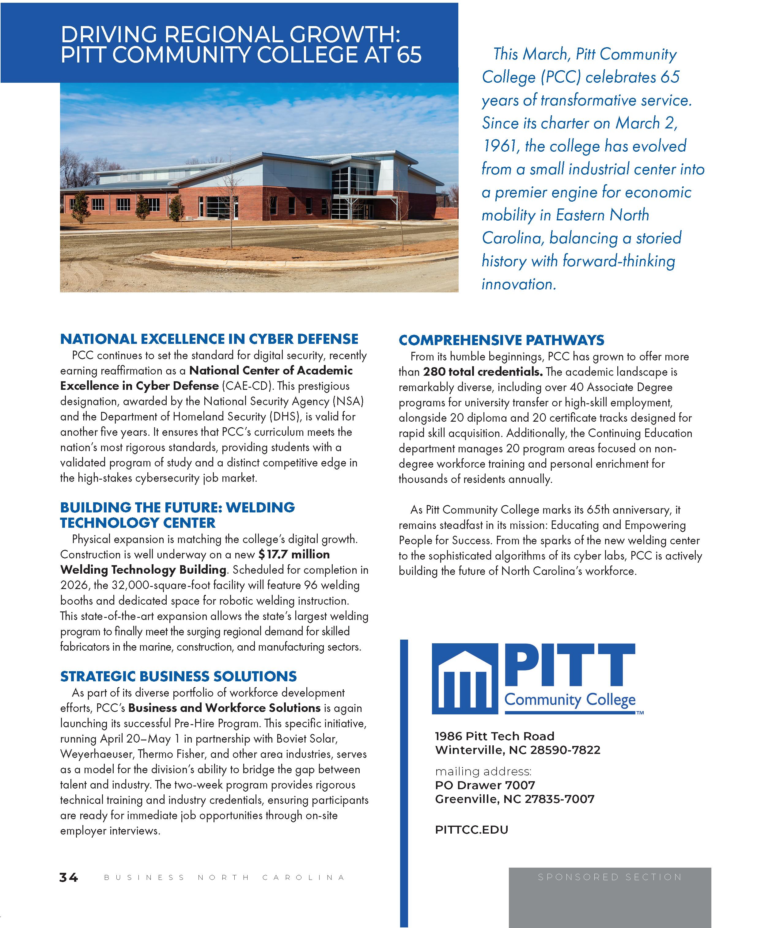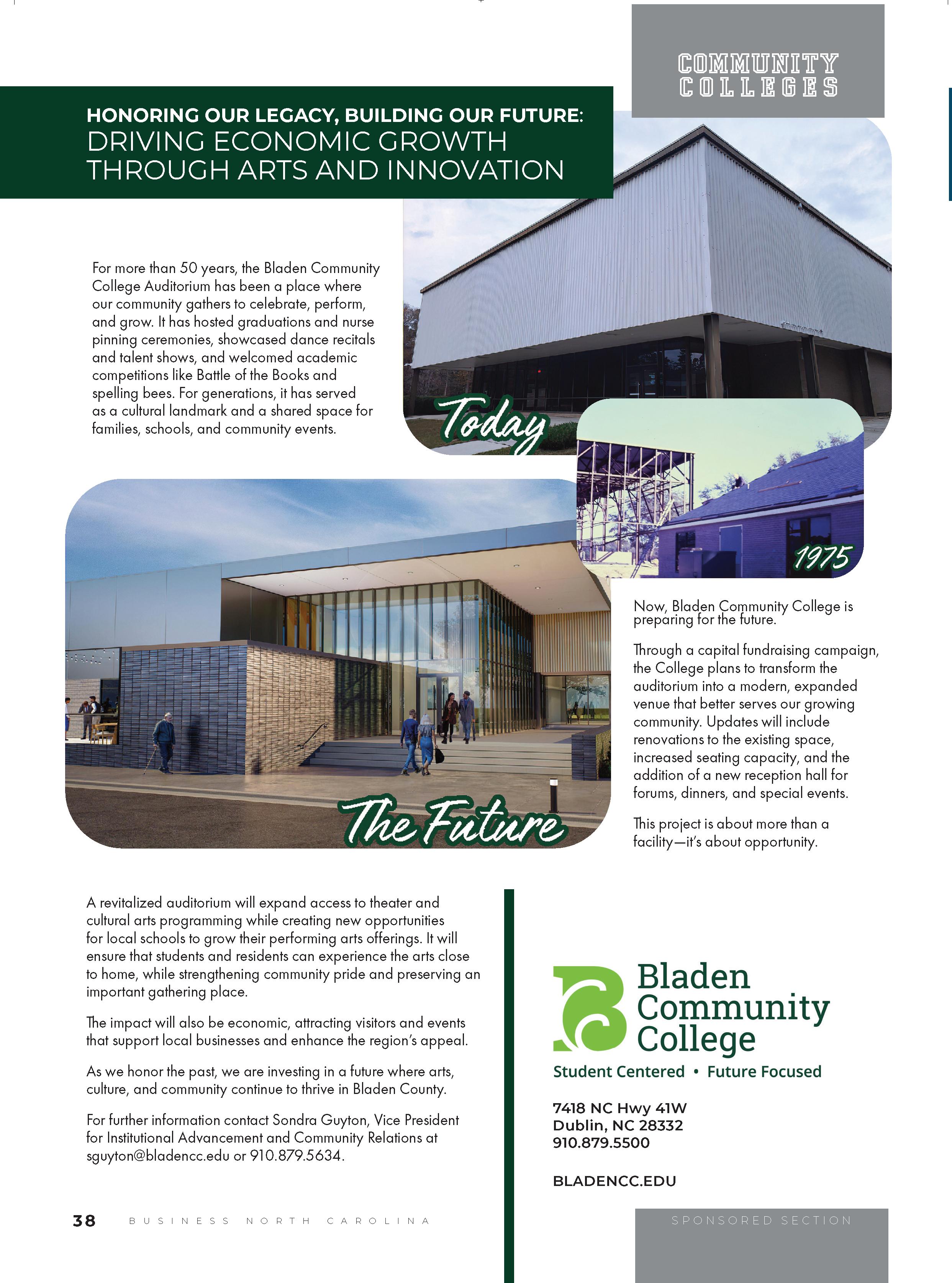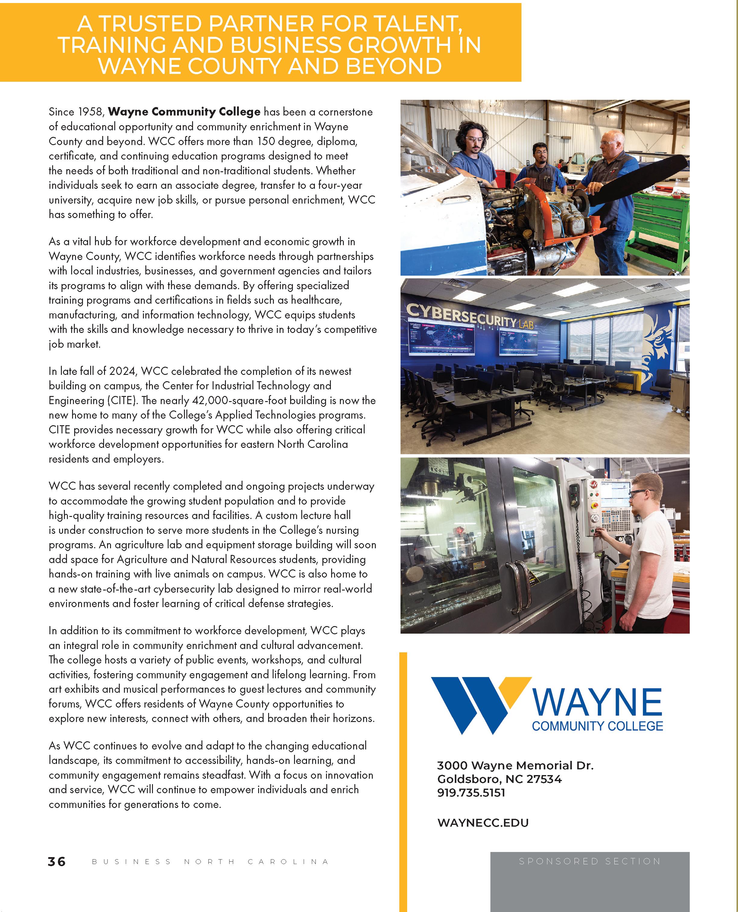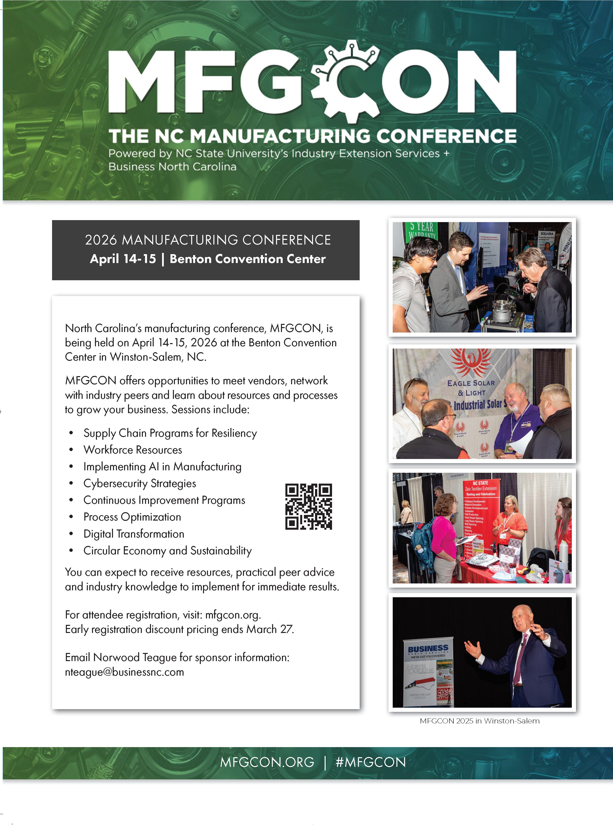 “Launched by the Cabarrus EDC in partnership with the National Center for Economic Gardening, [it] focuses on growing Stage 2 companies that are already here and are ready to grow,” Carson says. “By prioritizing business development for advanced manufacturing and industrial development in key areas, Cabarrus County is diversifying its economic base and supporting the creation of highquality jobs.”
