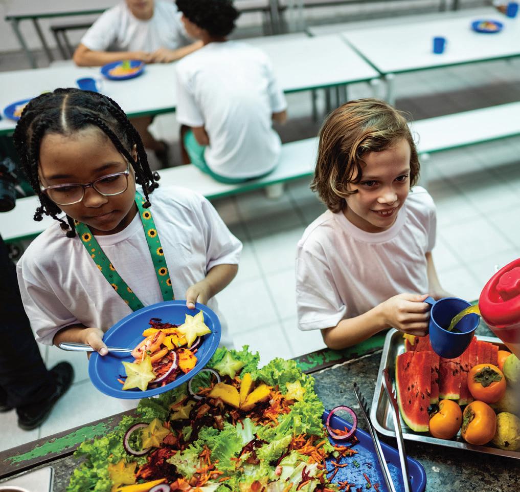 More than 80% of Elizabeth CityPasquotank Public Schools’ 5,000 students eat meals at school, all free through the federal Community Eligibility Provision program because of the large number of low-income families who live in the district. The school system employs about 60 cooks. They use recipes that adhere to USDA nutritional guidelines and work hard to make food tasty and appealing. Some of their dishes have won USDA awards, including for scratchmade items such as pico de gallo, kale with garlic and parmesan, and local collard greens. “Our food is so good, I can’t think of a meal I like best,” says Rinehart, who eats with the students at least four times a week.