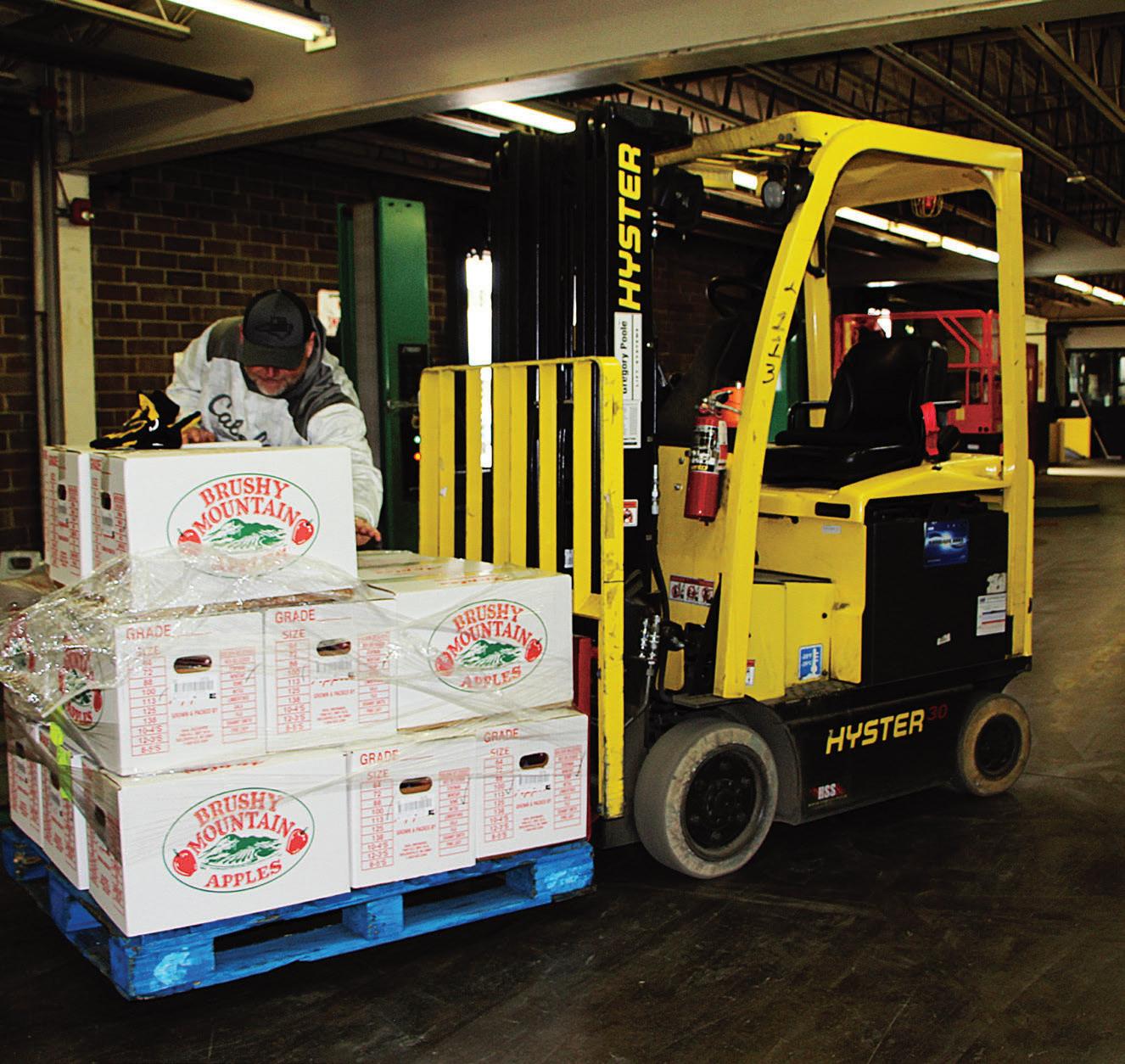 It takes a team to move fresh produce through the state’s Food to School program, from Walter Beal, director of food distribution, below, to Tammy Rinehart, nutrition director at Elizabeth City-Pasquotank Public Schools.