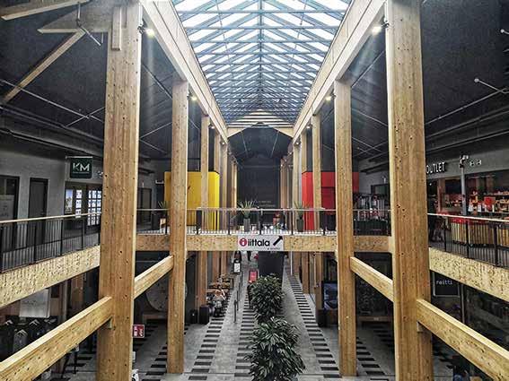 訪問後には、木材の処理などに従事している研究開発(R&D)の専門家と 対談します。また地元にある木でできたショッピングモールを訪問し、建 設者本人による建築に関するプレゼンテーションを聞くことができます。