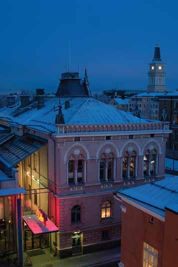 イベント会場の「ライトゥリ(Laituri)」は、アート作品の展覧会や著者の トークショー、音楽パフォーマンスや図書館クラブナイトなど、幅広い イベントへ施設を提供しています。また、同区画にあるBusinessOuluの 展示エリアでは地元企業が自社の製品を展示することができます。地元 住民は夕方から行われる公開会議に参加し、図書館の発展に貢献するこ とも可能です。オウル市立図書館はオープンソースの図書館ITシステム 「Koha」を使用しています。