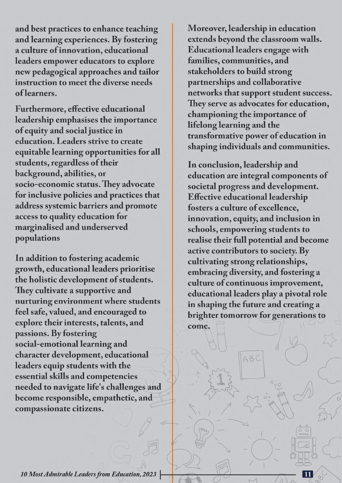 Welcome to the latest edition of our magazine, where we delve into the dynamic world of education leadership. In this issue, we shine a spotlight on the visionary leaders who are shaping the future of education. From innovative educators to trailblazing administrators, we explore the inspiring stories and transformative initiatives driving progress in the field of education.