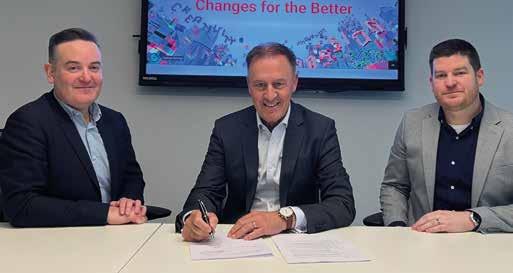 (L to r): Jeff Aherne, CEO, EVHACS; Ciaran Moody, President, Mitsubishi Electric Ireland; and Darran Faherty, CPO, EVHACS.