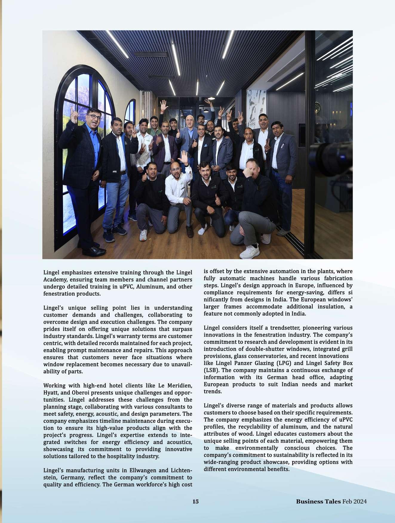 Lingel Windows specializes in crafting unique and customized fenestration solutions, catering to a broad spectrum of projects from residential spaces, houses, villas, and apartments to diverse commercial establishments like offices, hotels, hospitals, and resorts, Lingel'sexpertise spans various architectural domains. The company offers an extensive range of products, including high-end timber or wooden windows, Glass Conservatory, Window Sill, Venetian Blinds, and Roller Shutters that can be operated manually or automatically.