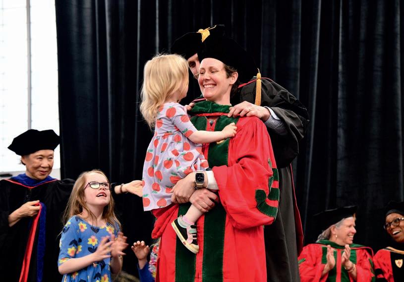 In Campus News, commencement stories celebrate the accomplishments of the Class of 2023. Rochelle Walensky, MD, former director of the CDC, addressed the graduates and their guests at the MD and PhD convocation ceremony, and we share a student conversation with her (see story, page 7).