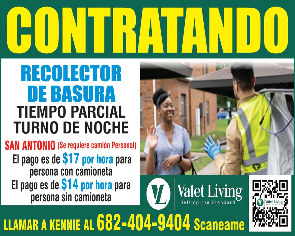 TRABAjO SI HAy!! BUSCAmOS RECOLECTOR DE BASURA A TIEmPO PARCIAL, TURNO DE TARDE - SAN ANTONIO, SE REqUIERE CAmIóN PERSONAL, EL PAgO ES DE $17 POR UNA CAmIONETA y $14 PARA qUIENES NO TENgAN CAmIONETA Llamar a Kennie al 682-404-9404