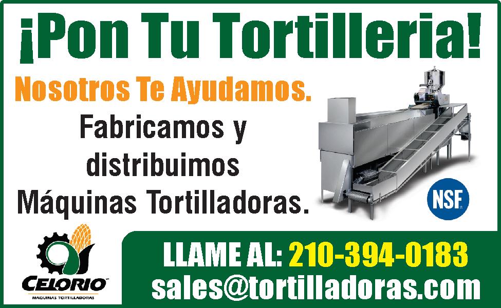 TE AyUDAmOS A PONER TU PROPIO NEgOCIO ¡Nosotros Te Ayudamos! Pon Tu Propia Tortilleria! Fabricamos y distribuimos Máquinas Tortilladoras hace mas de 80 años. LLAME AHORA: 210-3940183 - sales@tortilladoras.com máqUINAS TORTILLADORAS y ACCESORIOS 100% ORIgINALES LLÁMANOS AL: 210-394-0183 - sales@tortilladoras. com