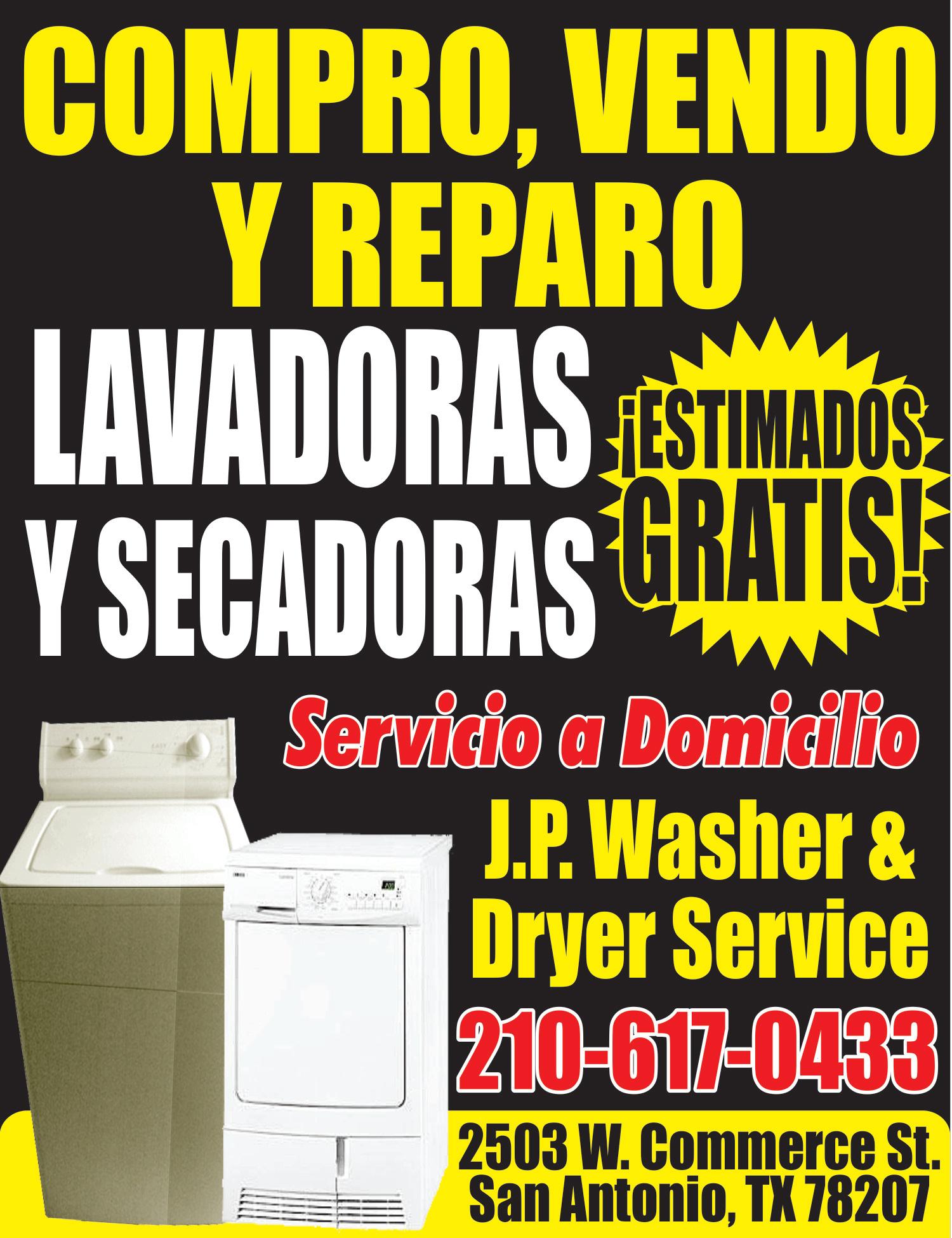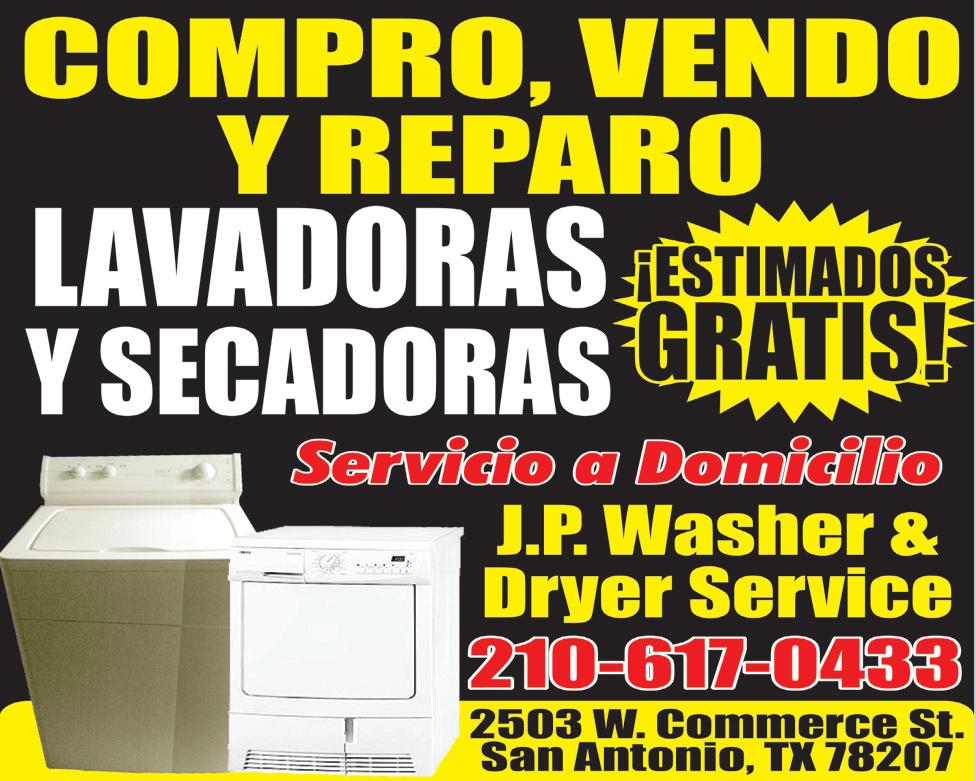 PREgUNTE POR EL ESPECIAL de esta sección. 713-272-0101. NO FUNCIONA TU LAVADORA O SECADORA? NO LA TIRES, NOSOTROS TE LO ARREgLAmOS O TE LA COmPRAmOS Servicio a domicilio, Estimados gratis al 210-617-0433