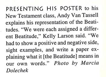 Sarah Sheldon (‘00) once made a poster for a ‘Brave New World’ assignment. It had nothing to do with the novel, and her explanation was so funny that we all laughed until we cried.