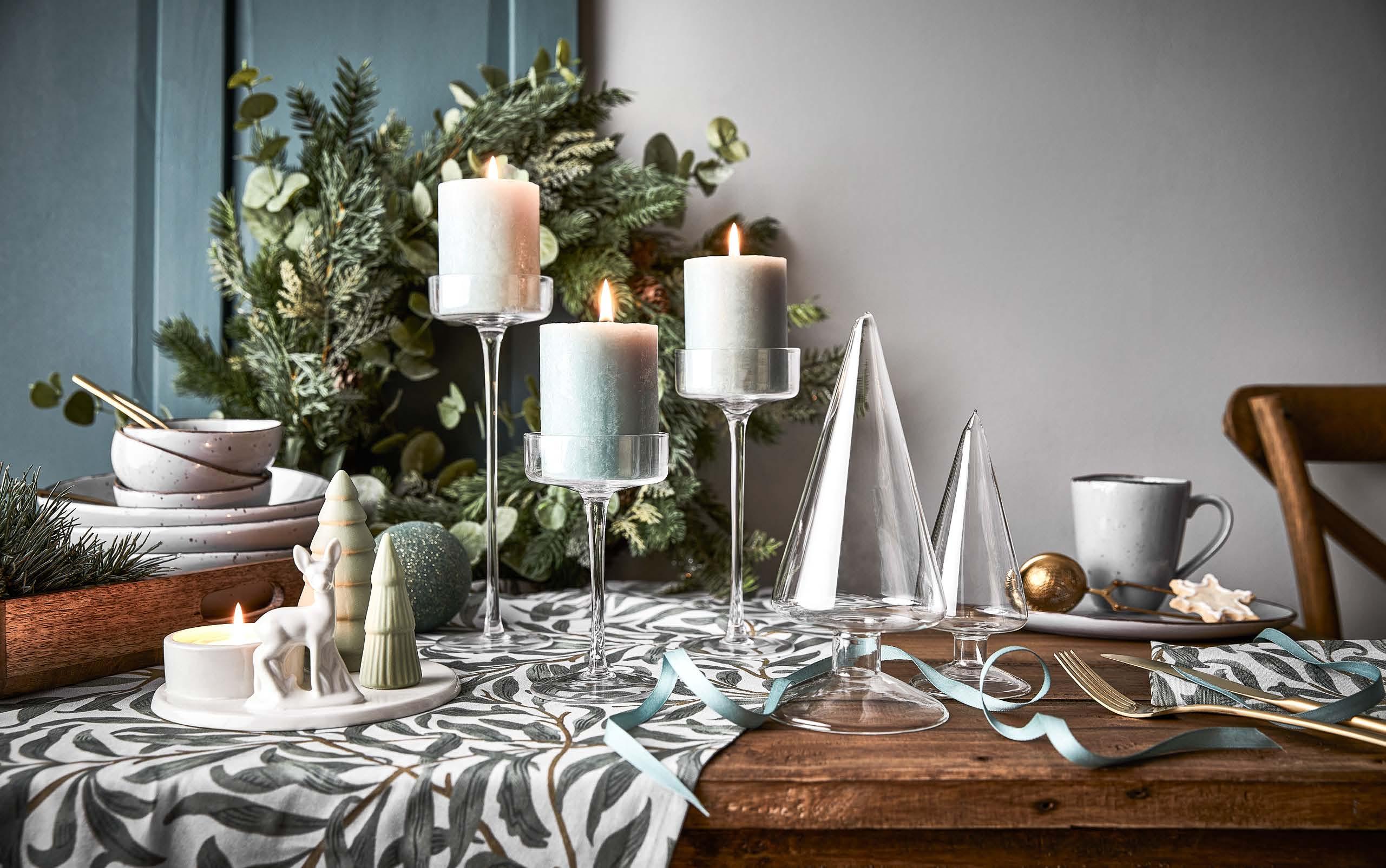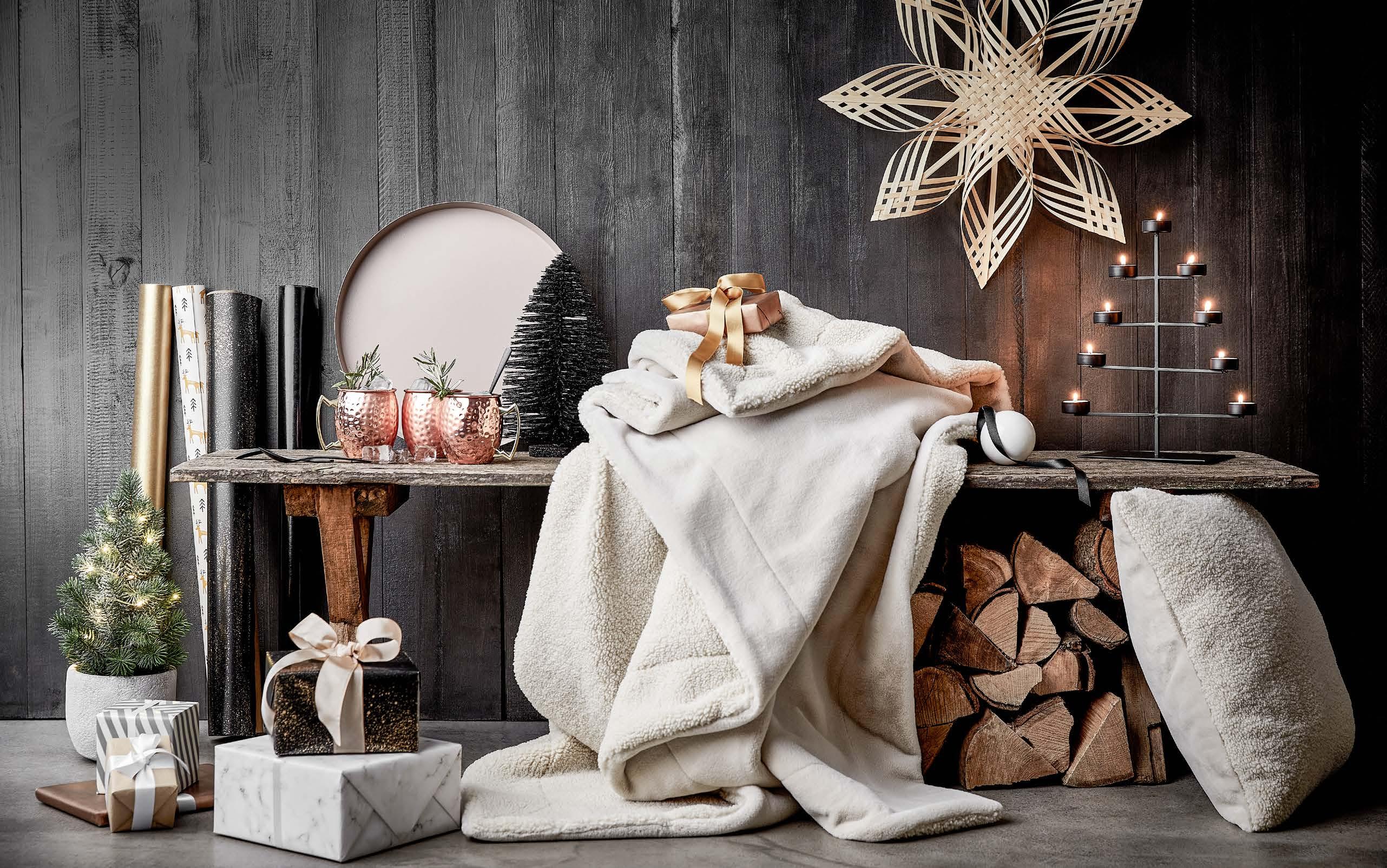 Ebben a kollekcióban a krémes színek lágy formákkal találkoznak, a kerámia étkészlet és a szájjal fújt poharak minimalista skandináv stílusban tündökölnek, mindezt pedig a természetes fa, a világító papírcsillagok és a gyertyák töltik meg az ünnep melegével.