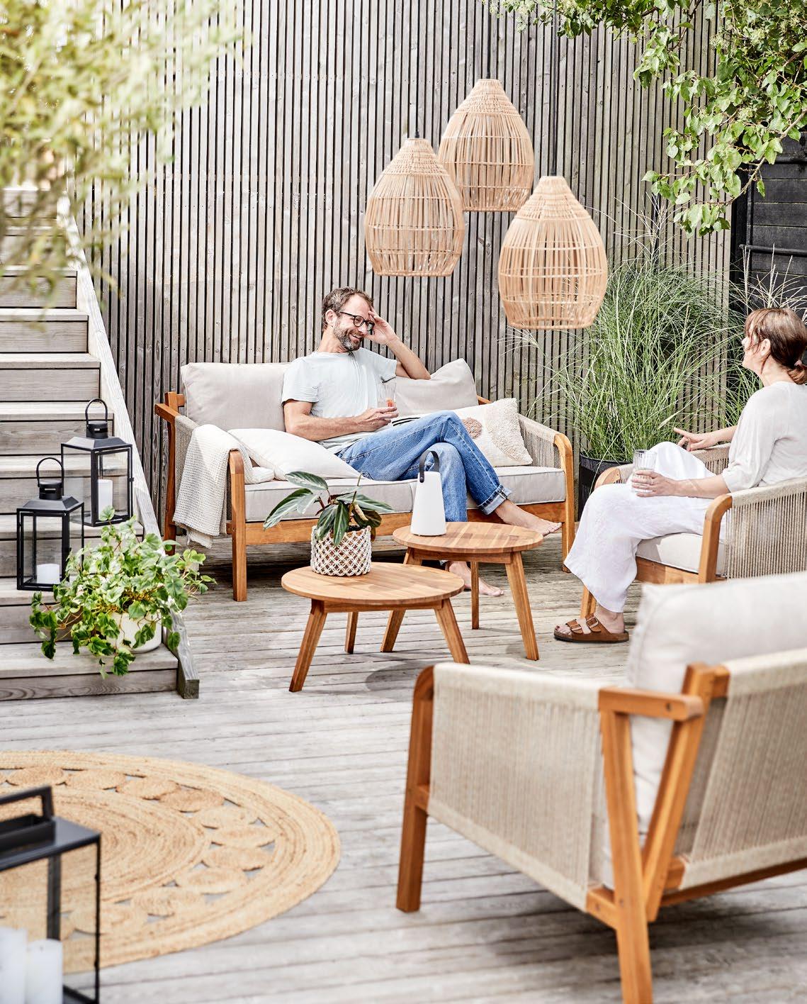 Természetes színek, FSC ® -minősített akácfa és divatos kötélzsinórok: a ROPE ISLAND otthonos és stílusos alapot kínál a szabadtéri pihenéshez a teraszon vagy az erkélyen.