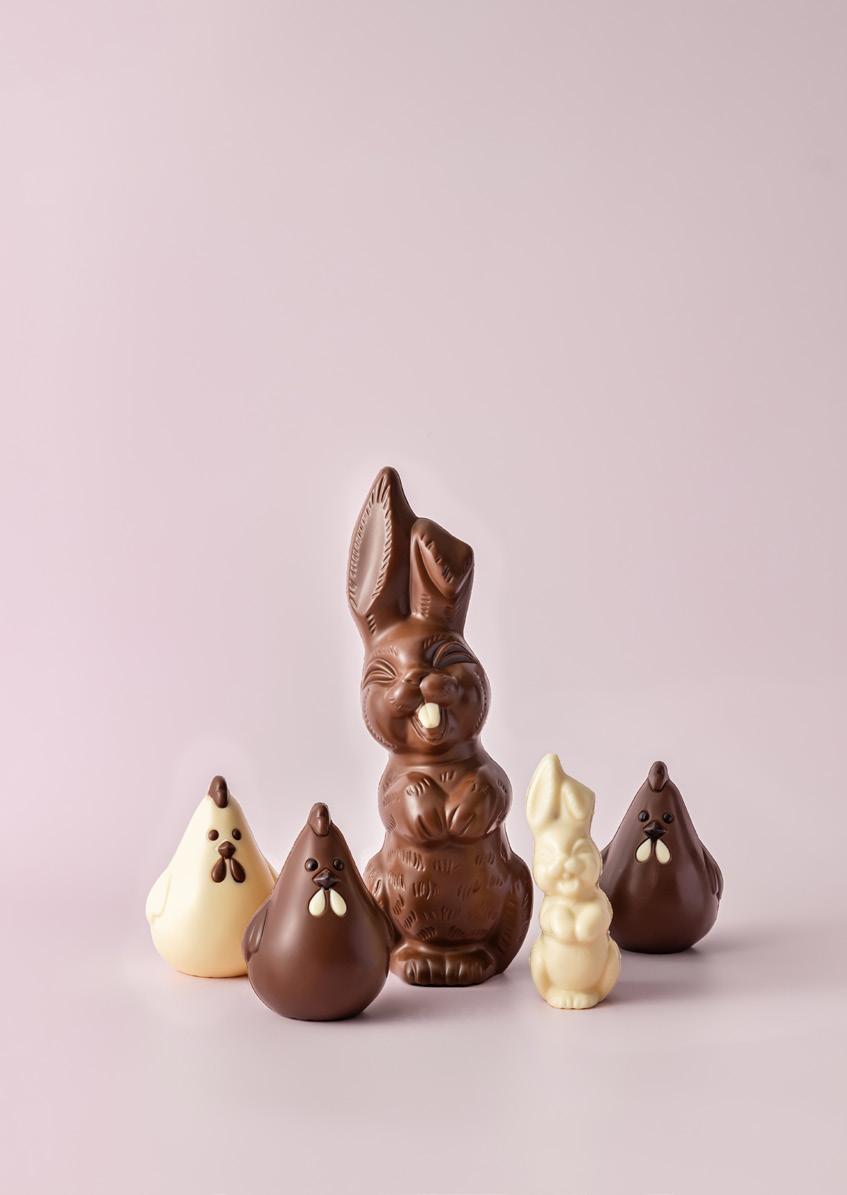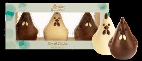 Three delightful hollow chocolate chicks in indulgent milk and white chocolate.