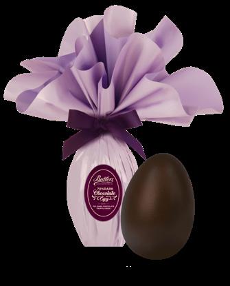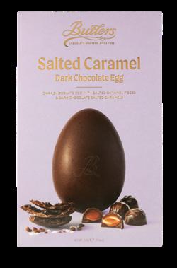 Dark chocolate egg with delicious dark chocolate salted caramels.