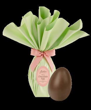 Milk chocolate egg with delicious milk chocolate salted caramels.
