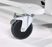 This ingredient added to the surface increases the consistency and reliability of the bounce of the ball for both topspin and backspin shots so producing excellent playability. It reduces skid and gives players every confidence to play their shots. The top is protected by a strong steel frame with magenta corner pieces. The undercarriage is one of the strongest available. It incorporates 4 large Steinco 125 mm strong wheels ¹, 2 of which have brakes. This guarantees both firm standing and easy movement. Transportation and storage is easy with the unique space saver system which makes folding and rolling the table simple and safe. The table tops fold together at the center ⁵, reducing the width in the storage position to only 20 inches or 51 centimeters. A unique easy to use safety system ³ prevents the table from opening and closing accidentally. A perfectly level playing surface is achieved by use of the height adjusters ² on all four of the end legs.