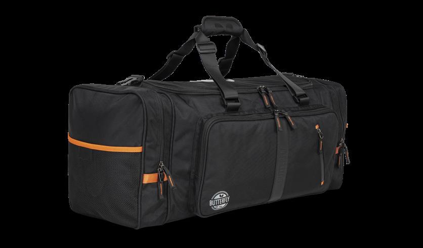The Butterfly Octet 25 mm is a top competition table that provides all the benefits of the 25+ top (see infobox on page 4) combined with an undercarriage with 2 separate halves and 8 wheels. The top is protected by a strong steel frame with magenta corner pieces. It is supported by a heavy duty undercarriage. A perfectly level playing surface is archived by use of the height adjusters ⁴ on all four of the corner legs.
