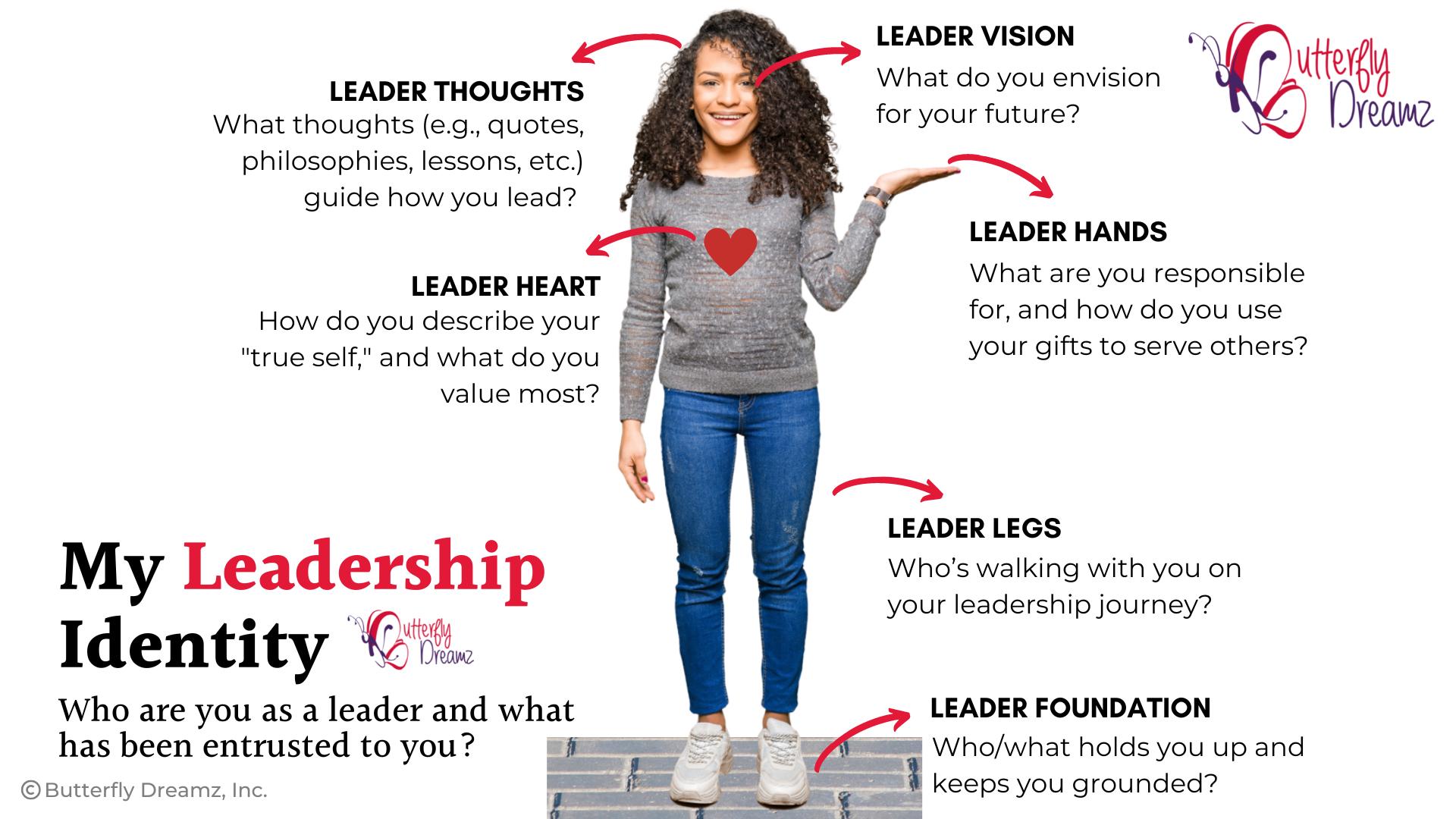 The graphics below provide a guide for how we can think about our leadership identity: who we are as leaders and what has been entrusted to us. Our leader identity changes over time as we experience life, learn various lessons, and understand ourselves better.