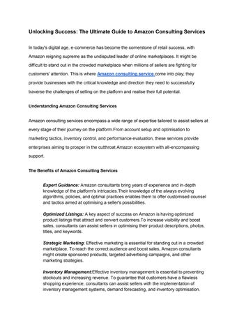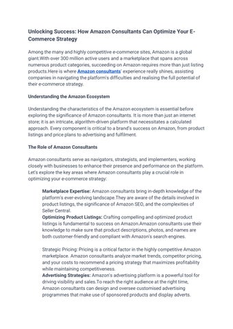 Navigating the Complexities of Amazon's Algorithm: Insights from Top SEO Consultants Being a major participant in the e-commerce industry, Amazon offers sellers unparalleled opportunities to engage with millions of customers worldwide.But with enormous opportunity also comes huge competition, and the key to succeeding in this extremely competitive industry is to comprehend and navigate the intricacies of Amazon's algorithm.In this comprehensive course, we'll explore the subtleties of Amazon's algorithm and gain invaluable advice from top Amazon Consulting Experts on how to use it effectively.